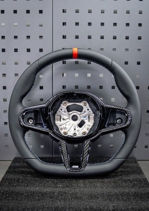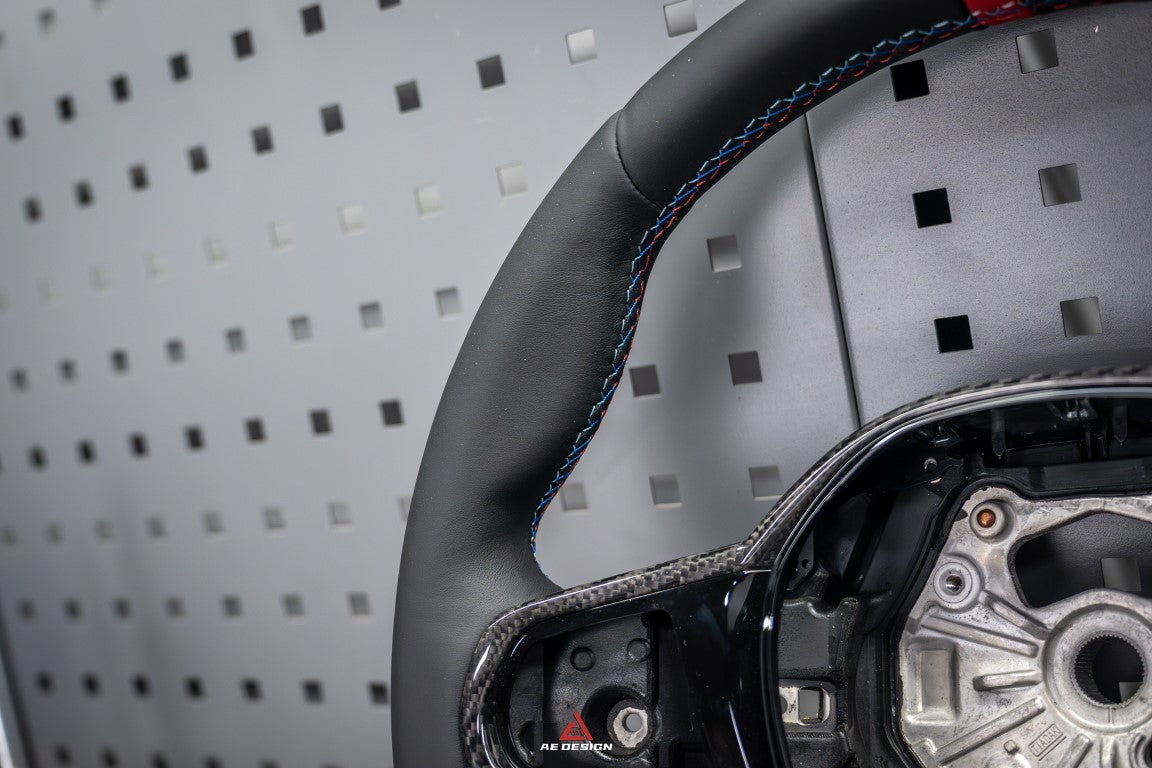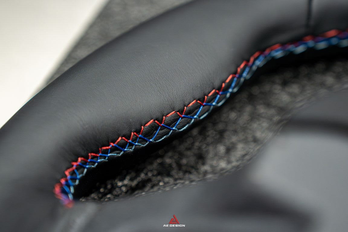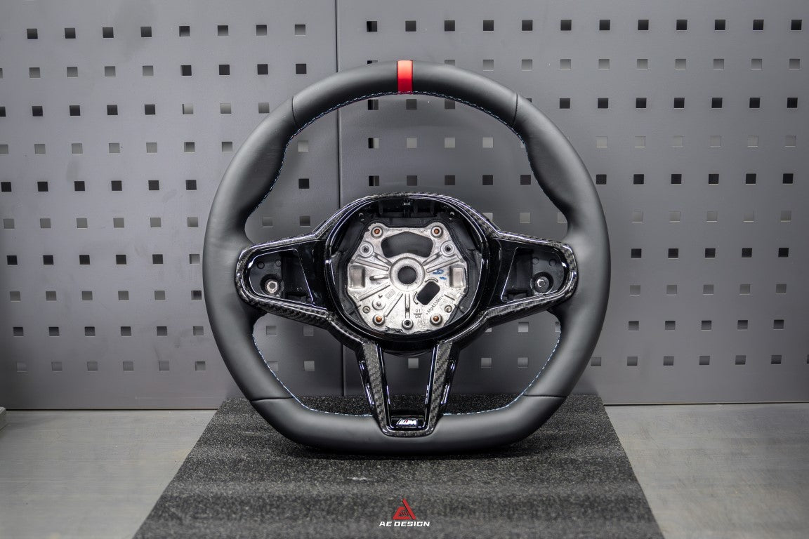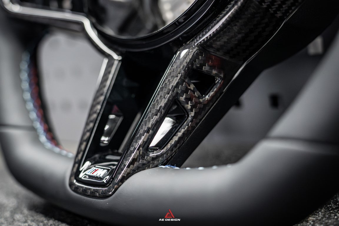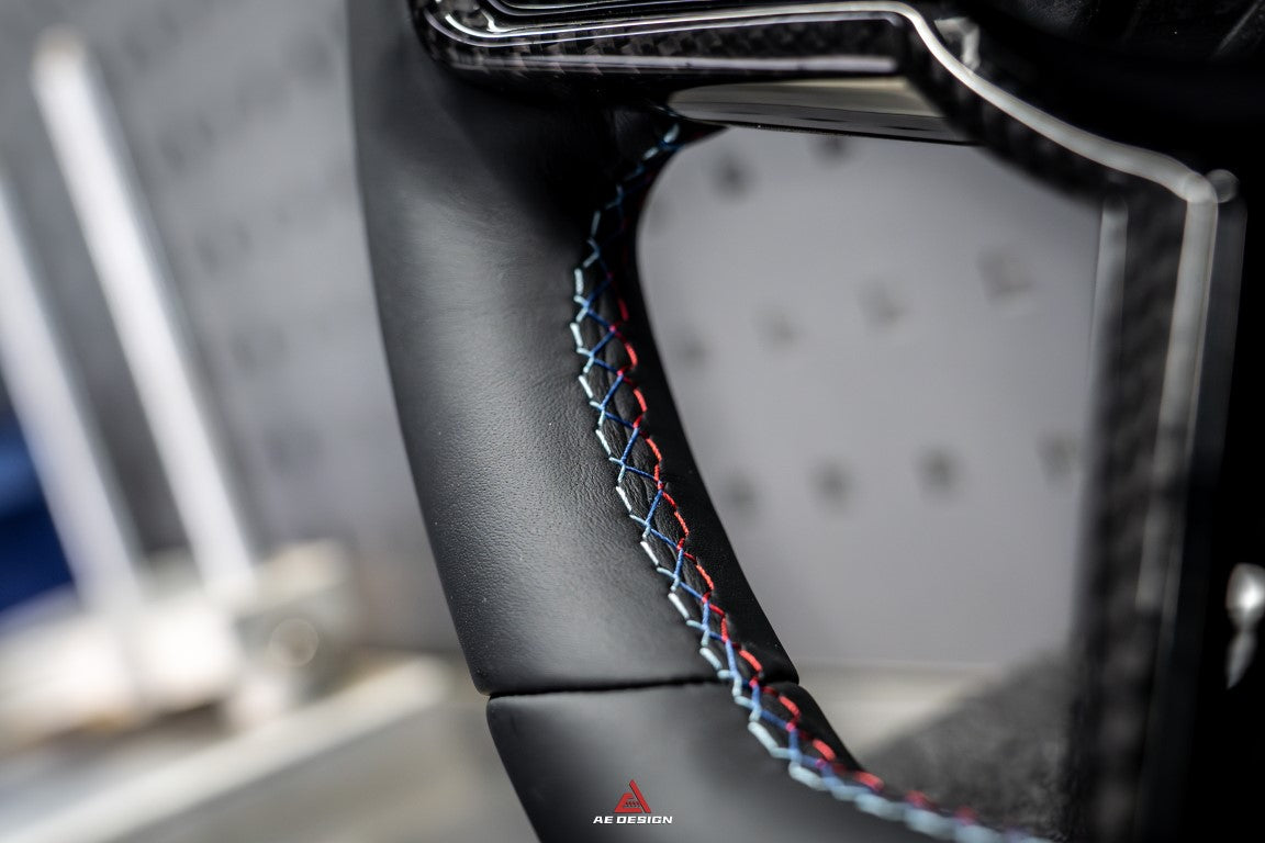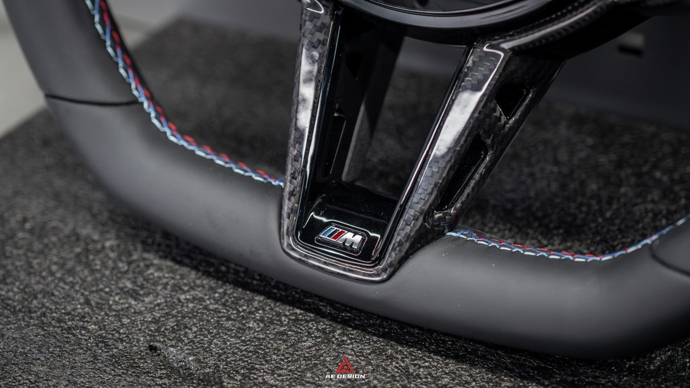 Upgrade Your BMW M3 G80 G81 2021 2022 2023 2024 & M4 G82 G83 2021 2022 2023 2024 with Aftermarket Parts - AE Style Steering Wheel Carbon Fiber & Black Leather from ArmorExtend
