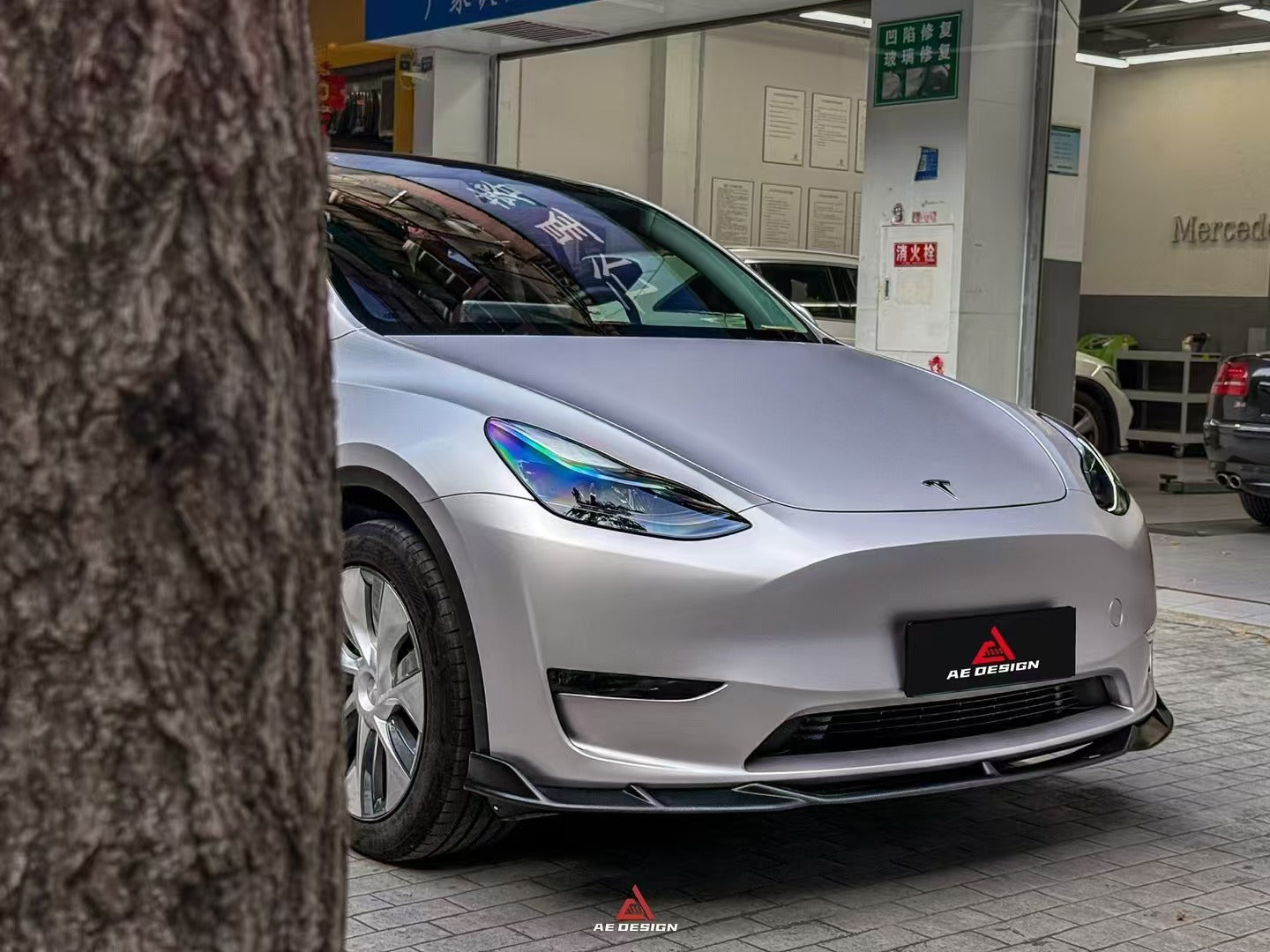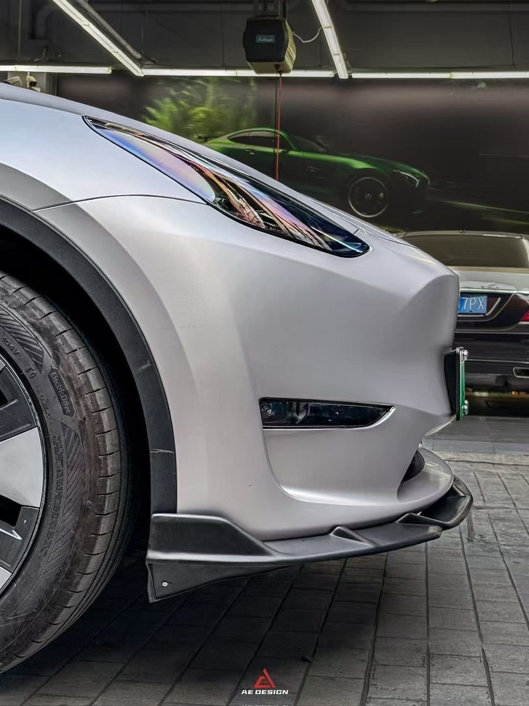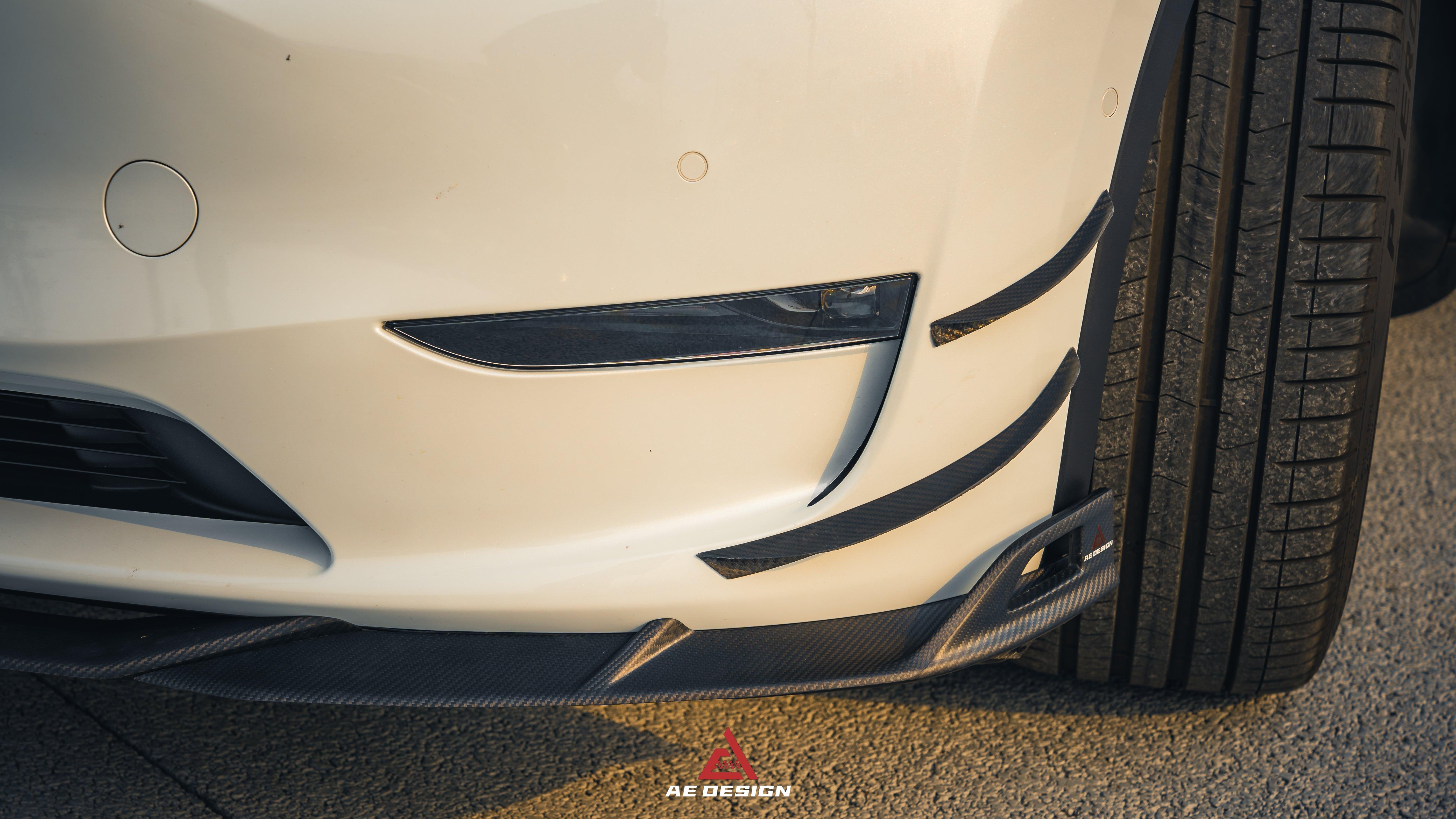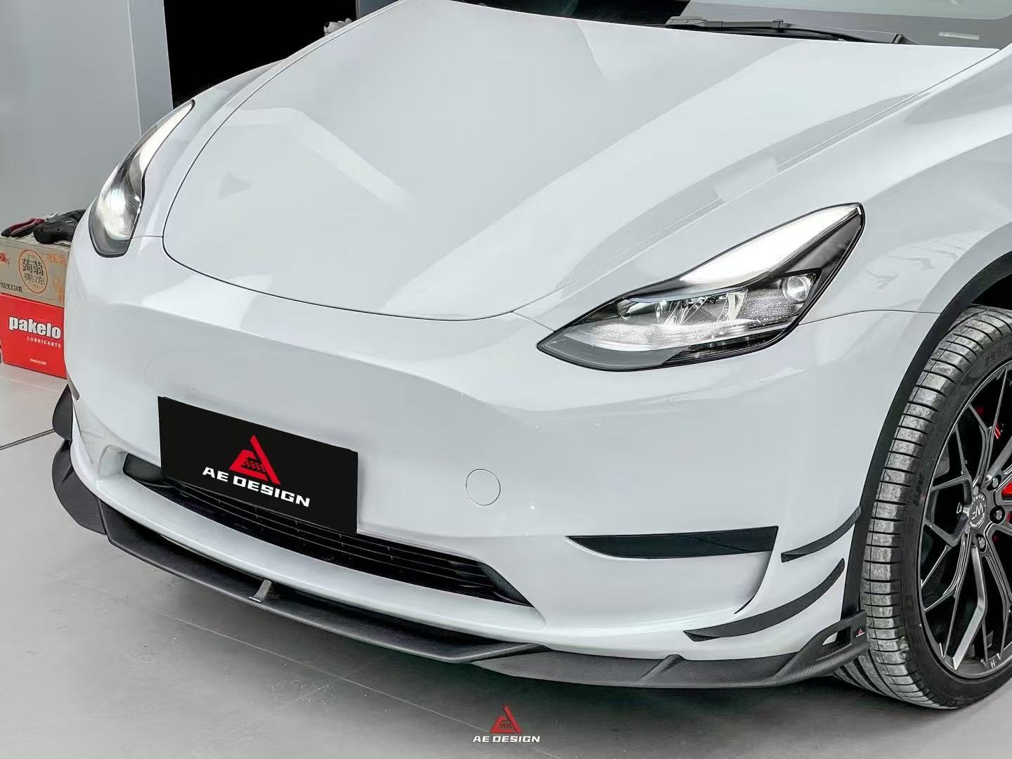 Upgrade Your Tesla Model Y 2020 2021 2022 2023 2024 2025 with Aftermarket Parts - AE Style Front Lip Carbon Fiber from ArmorExtend