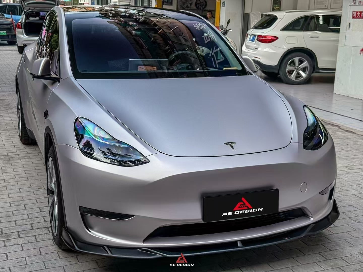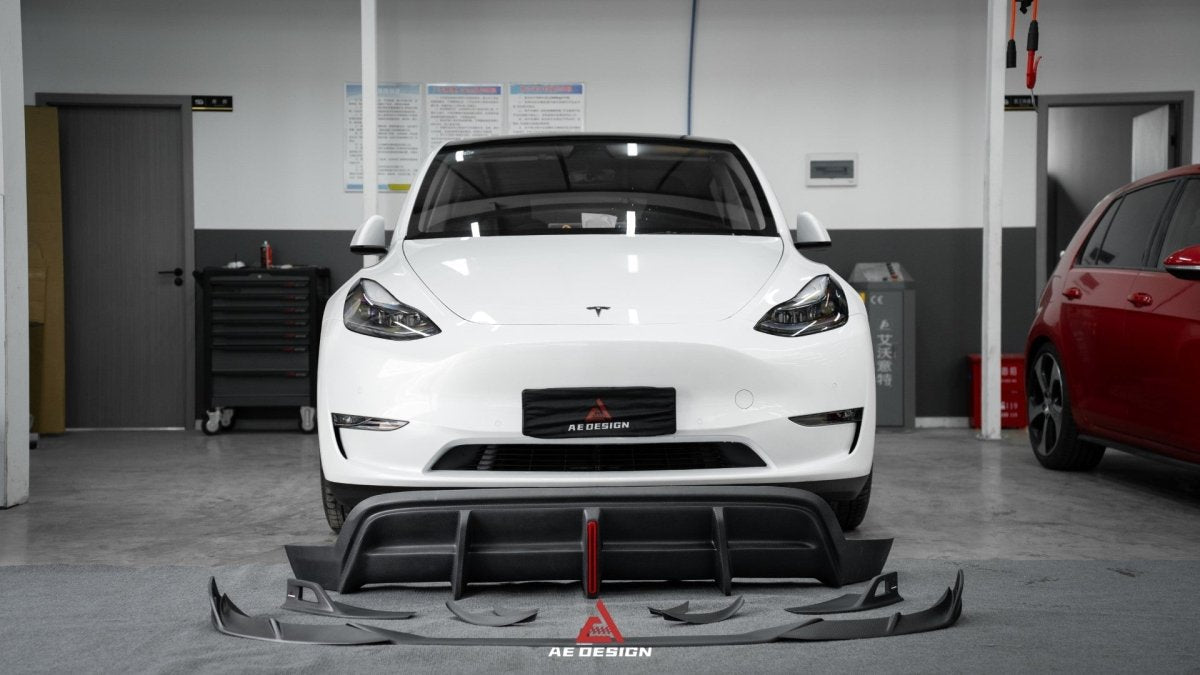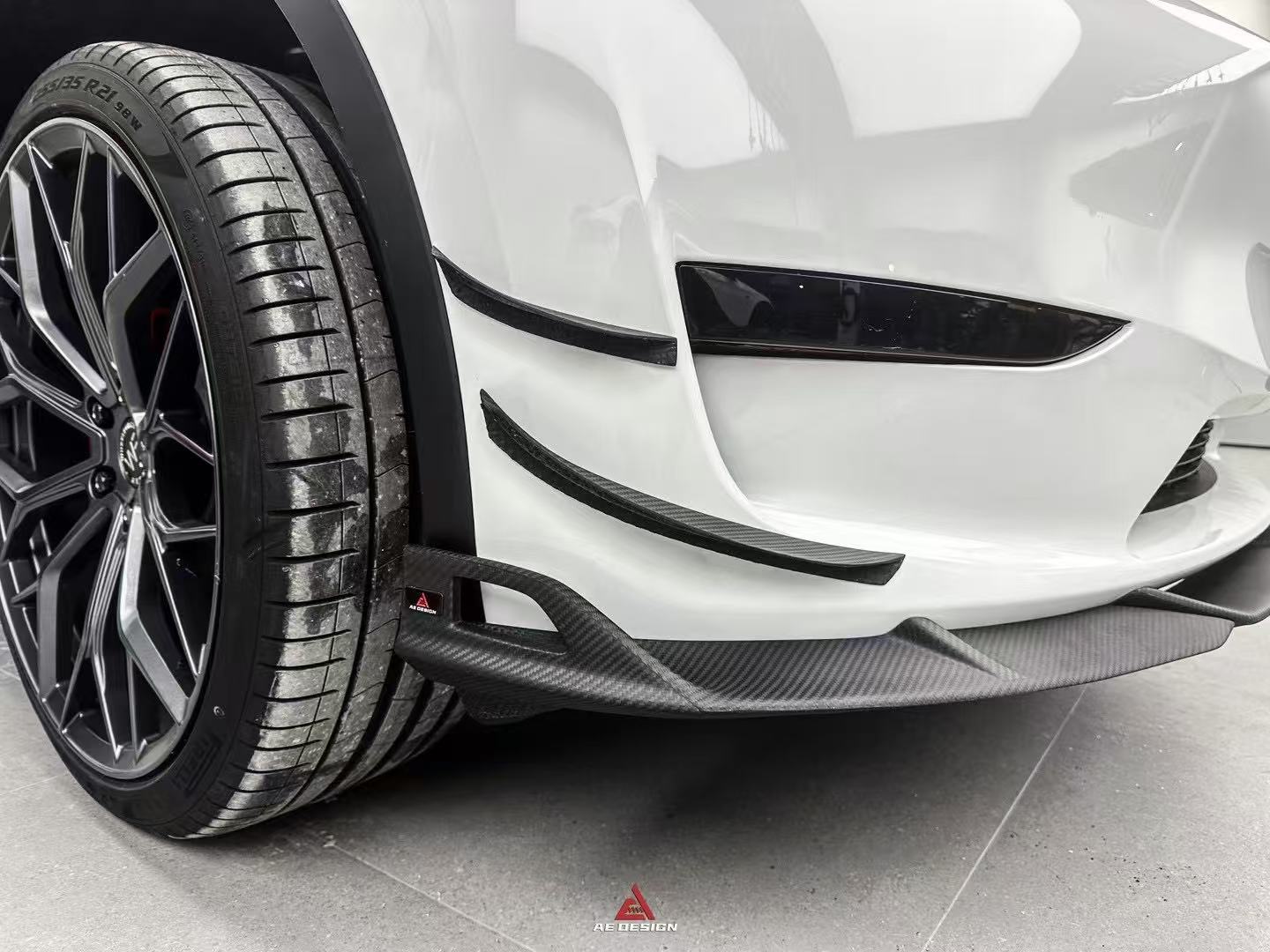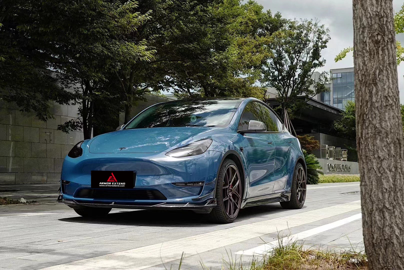 Upgrade Your Tesla Model Y 2020 2021 2022 2023 2024 2025 with Aftermarket Parts - AE Style Front Lip Carbon Fiber from ArmorExtend