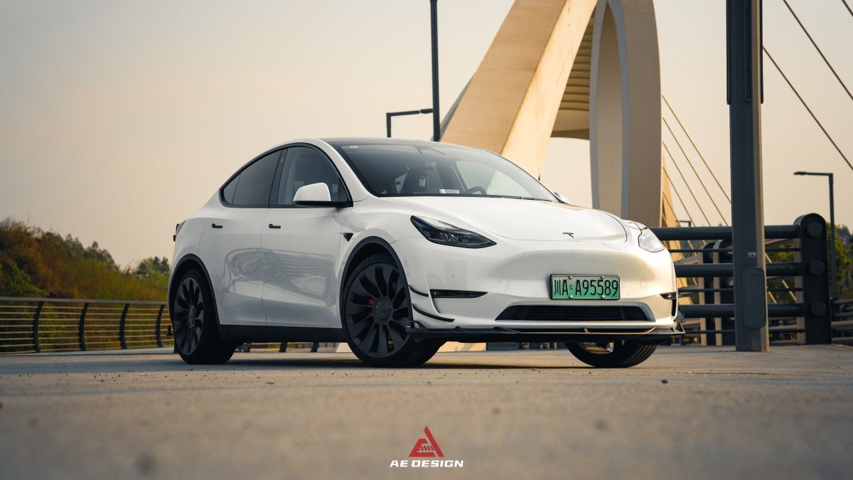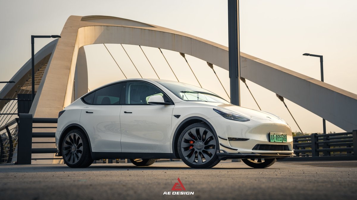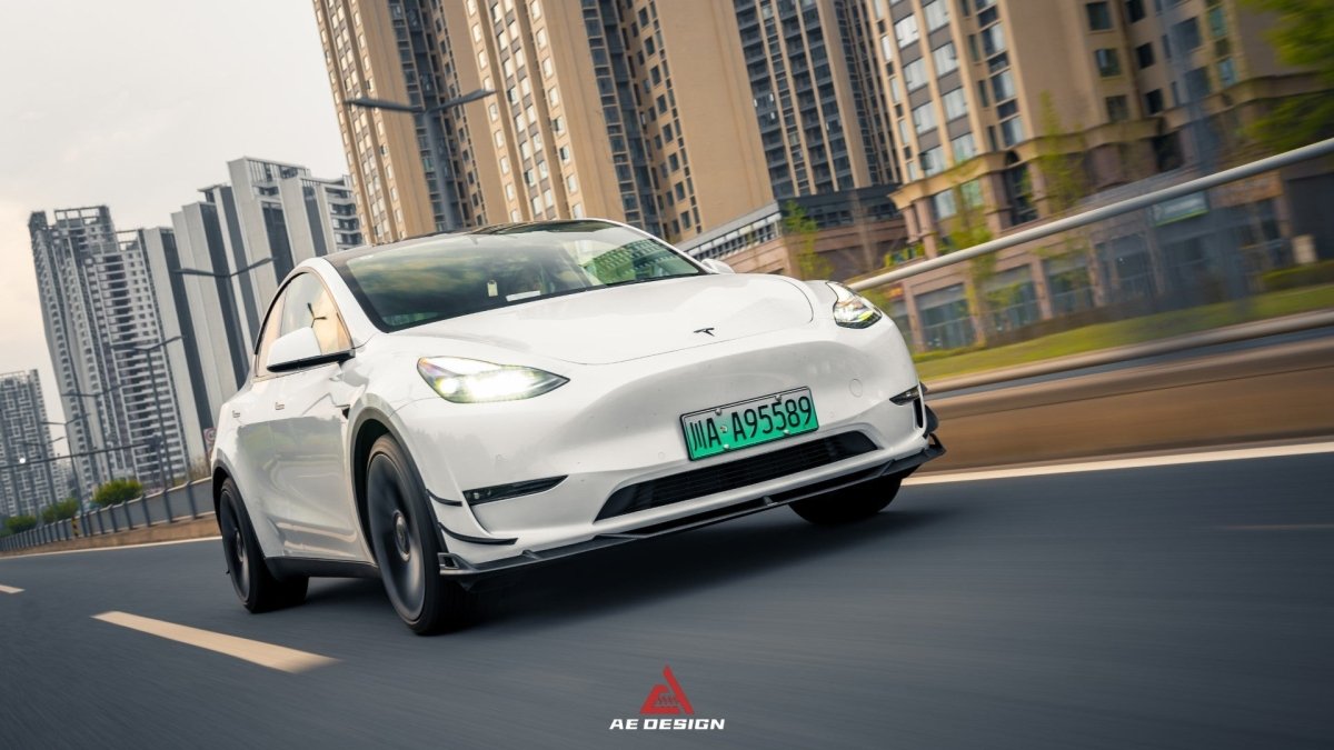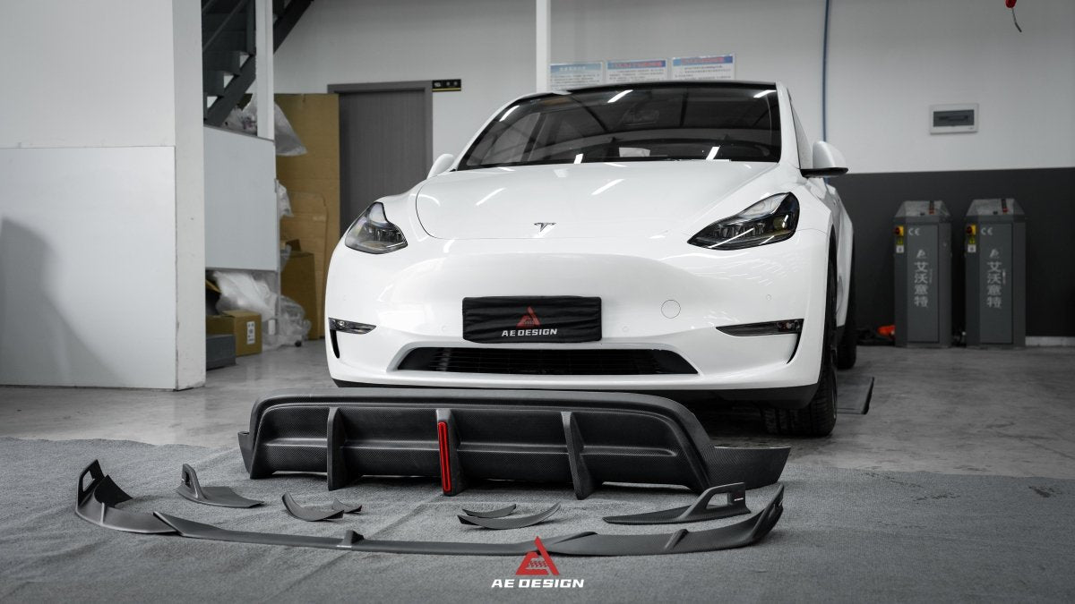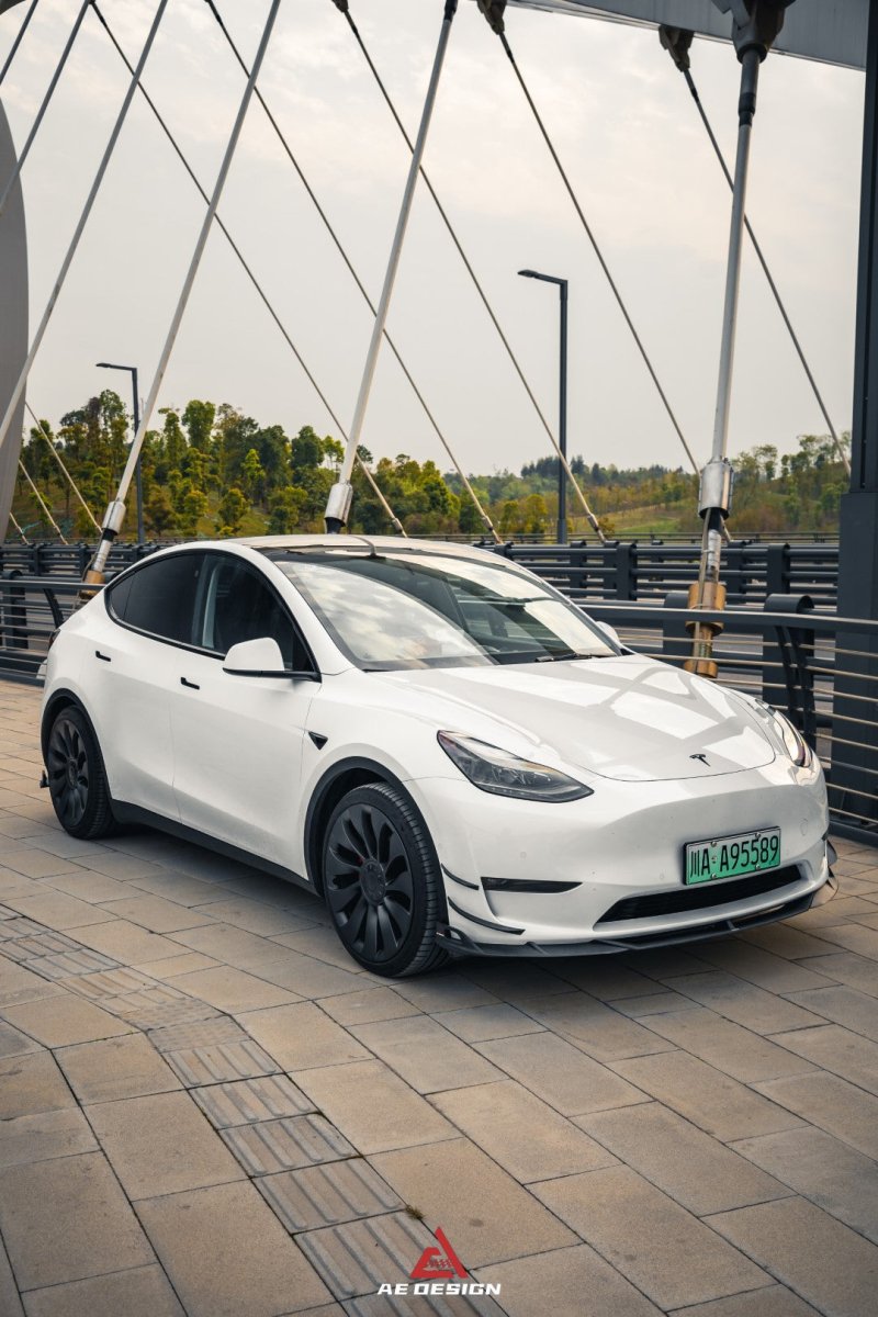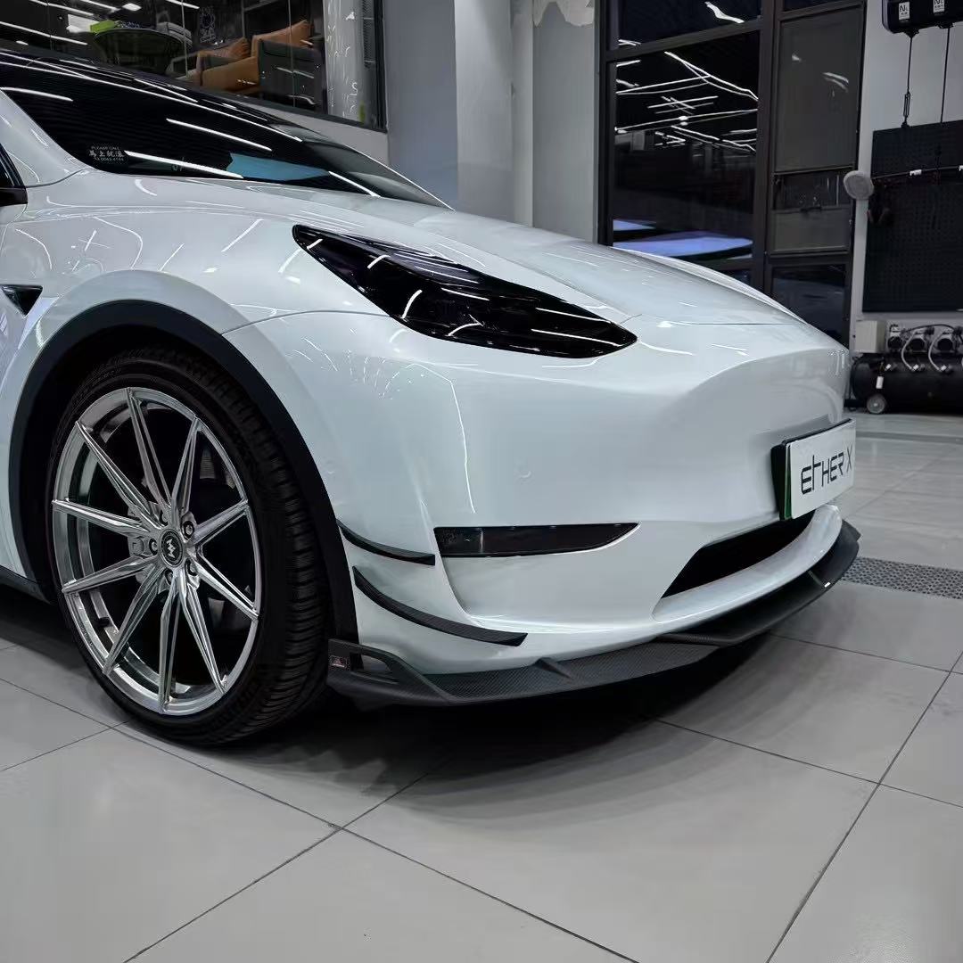 Upgrade Your Tesla Model Y 2020 2021 2022 2023 2024 2025 with Aftermarket Parts - AE Style Front Lip Carbon Fiber from ArmorExtend