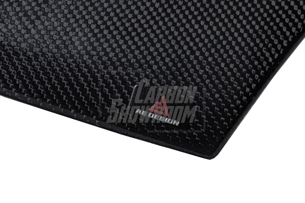 Double-sided Vacuumed Carbon: -Top side: Carbon Fiber with UV Protection Clearcoat -Underside: Carbon Fiber with Matte Finish |