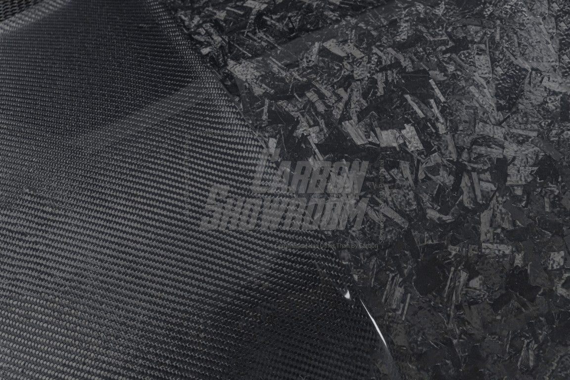 Forged (20% extra charge, made to order): Forged carbon fiber - a composite material made from randomly arranged, short carbon fiber strands combined with resin and compressed in a mold. Forged carbon fiber offers greater design flexibility compared to 3K woven carbon fiber, as it can be molded into more complex shapes without compromising structural integrity. Its random fiber orientation reduces weak points caused by the directional patterns in 3K weaves, enhancing impact resistance. Additionally, it has a unique aesthetic appeal, with a marbled texture that stands out from the uniform weave of 3K carbon fiber.