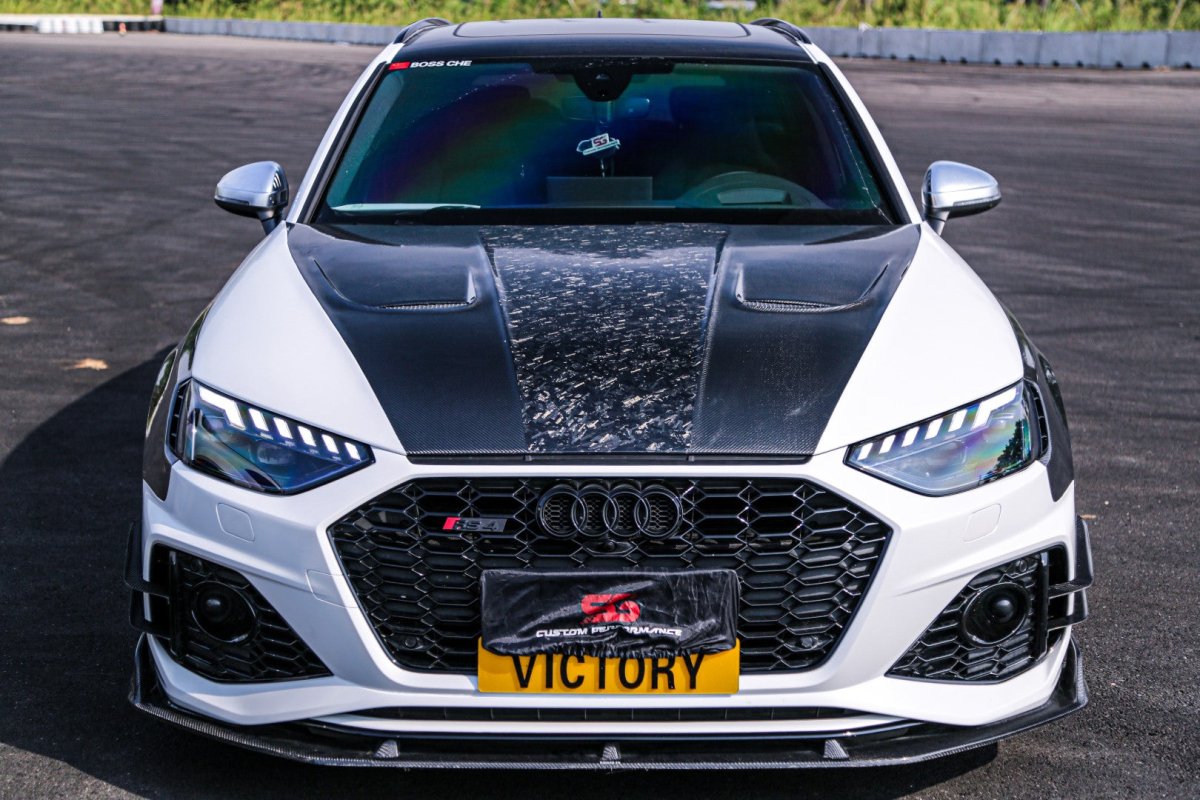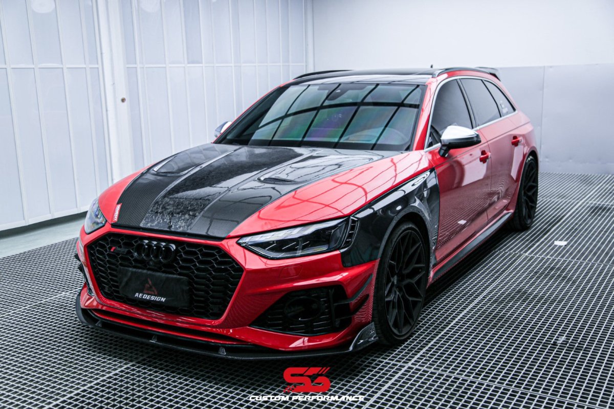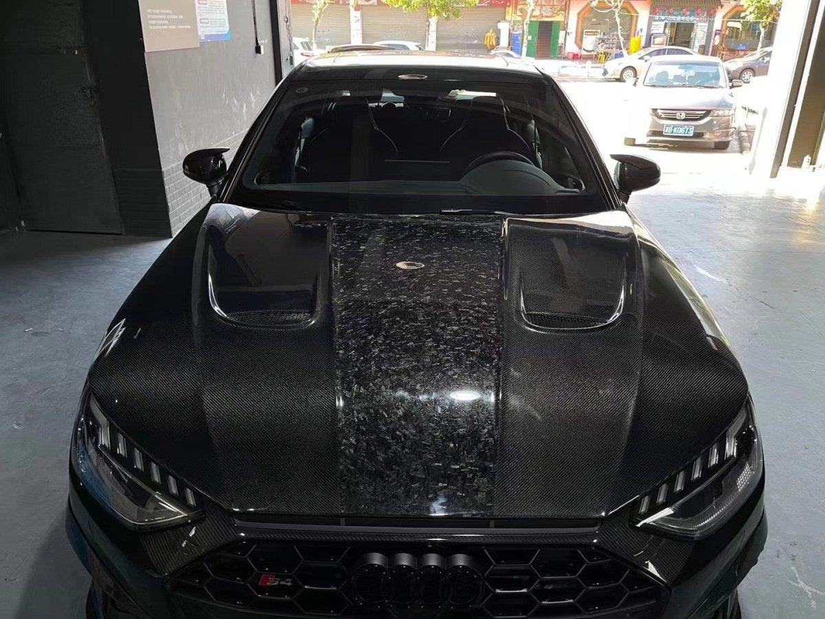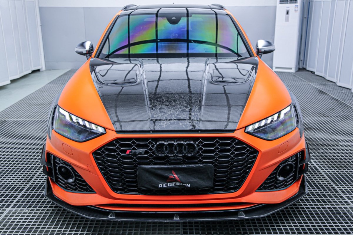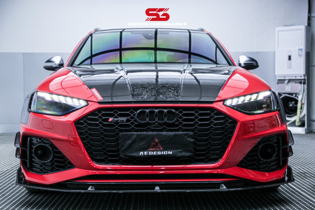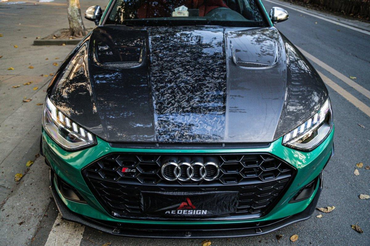 Upgrade Your Audi RS4 B9 B9.5 2018-ON & S4 / A4 / A4 Allroad / A4 Avant B9 B9.5 2017 2018 2019 2020 2021 2022 2023 2024 with Aftermarket Parts - AE Style Hood Bonnet Carbon Fiber from ArmorExtend