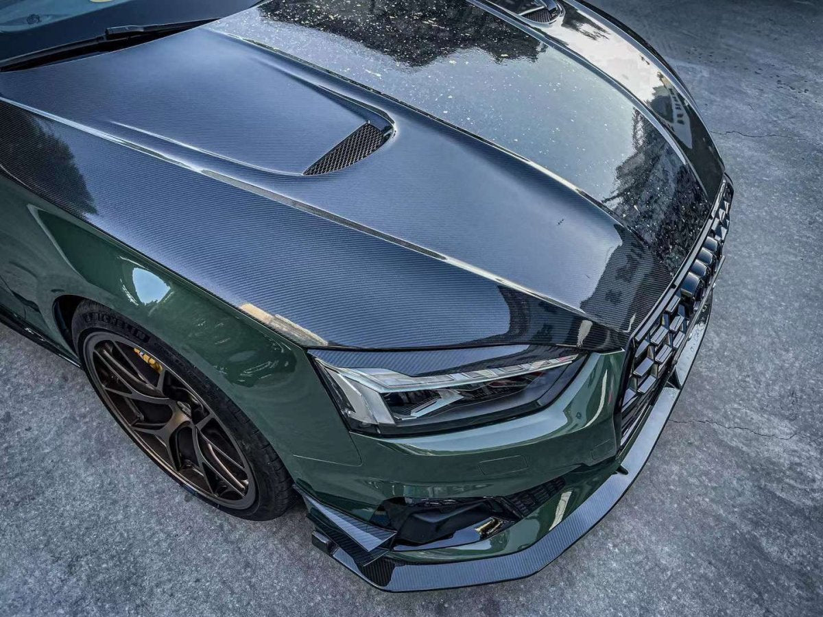 Upgrade Your Audi RS5 S5 A5 B9 B9.5 2017 2018 2019 2020 2021 2022 2023 2024 2025 with Aftermarket Parts - AE Style Hood Bonnet Carbon Fiber from ArmorExtend
