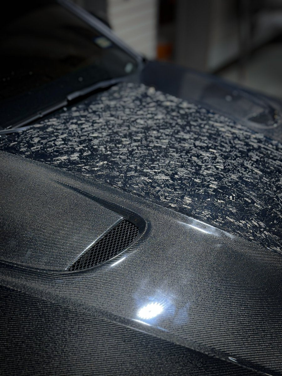 Forged (20% extra charge, made to order): Forged carbon fiber - a composite material made from randomly arranged, short carbon fiber strands combined with resin and compressed in a mold. Forged carbon fiber offers greater design flexibility compared to 3K woven carbon fiber, as it can be molded into more complex shapes without compromising structural integrity. Its random fiber orientation reduces weak points caused by the directional patterns in 3K weaves, enhancing impact resistance. Additionally, it has a unique aesthetic appeal, with a marbled texture that stands out from the uniform weave of 3K carbon fiber.