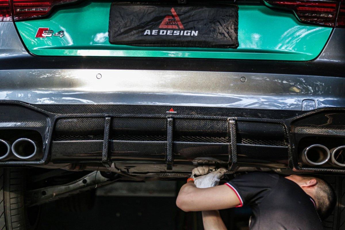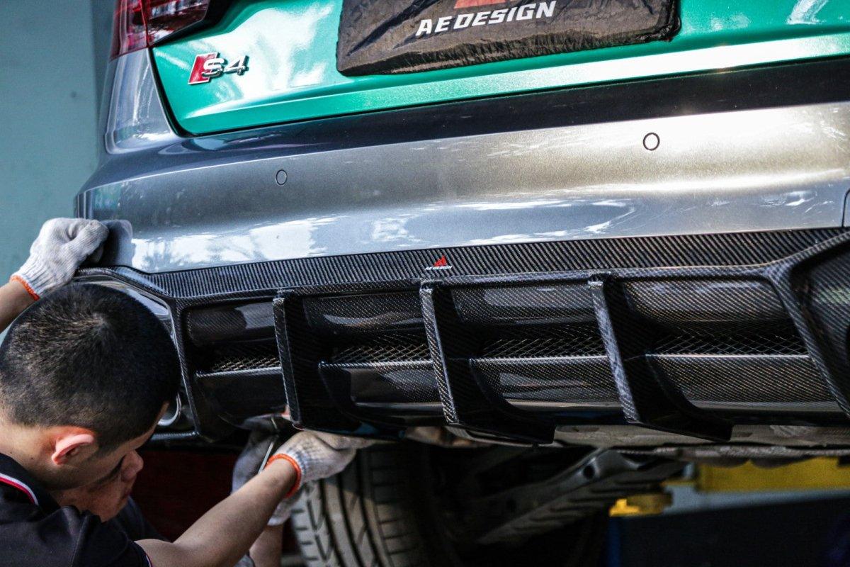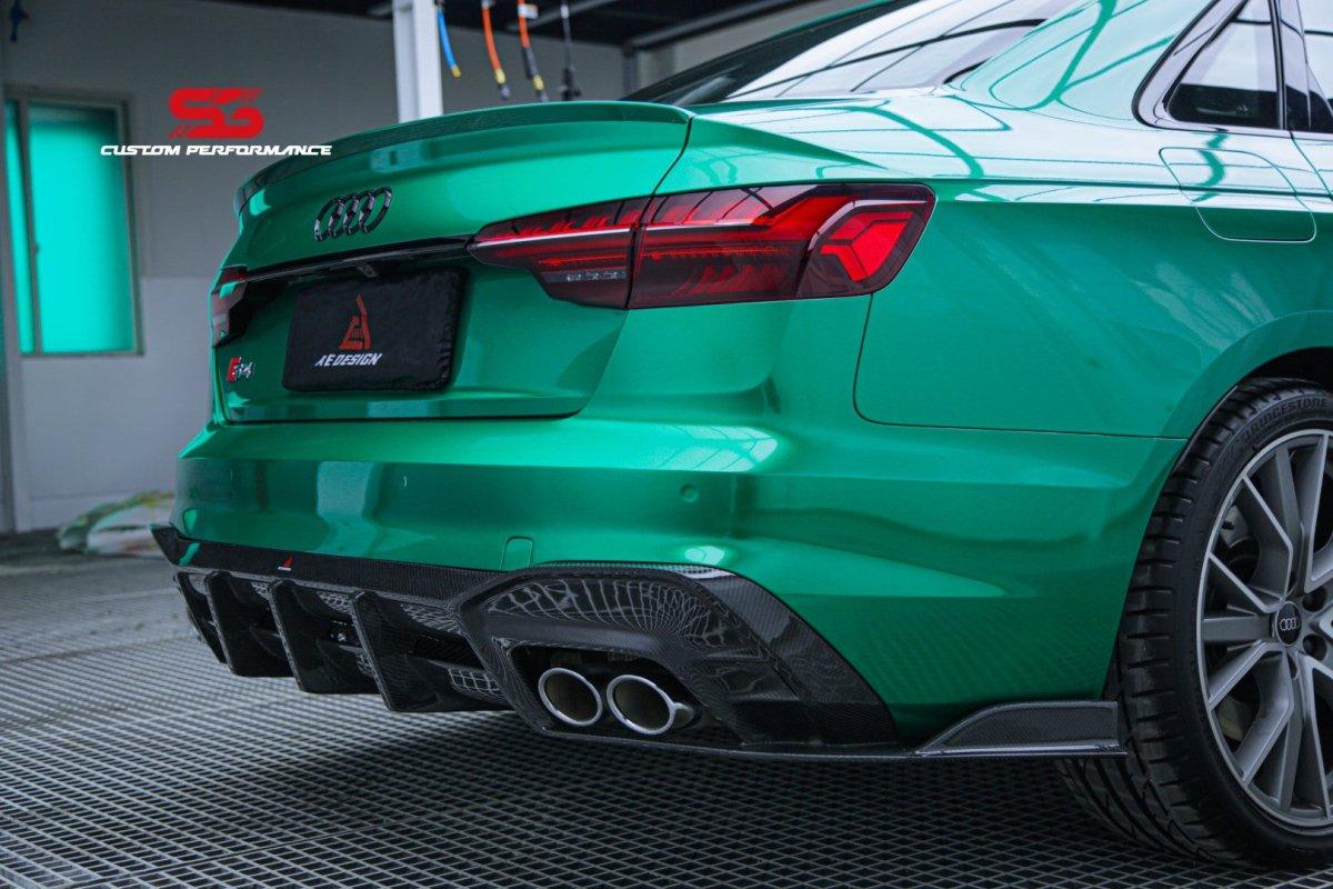 Upgrade Your Audi S4 / A4 (With S-line Bumper) B9.5 2020 2021 2022 2023 2024 with Aftermarket Parts - AE Style Rear Diffuser Carbon Fiber from ArmorExtend