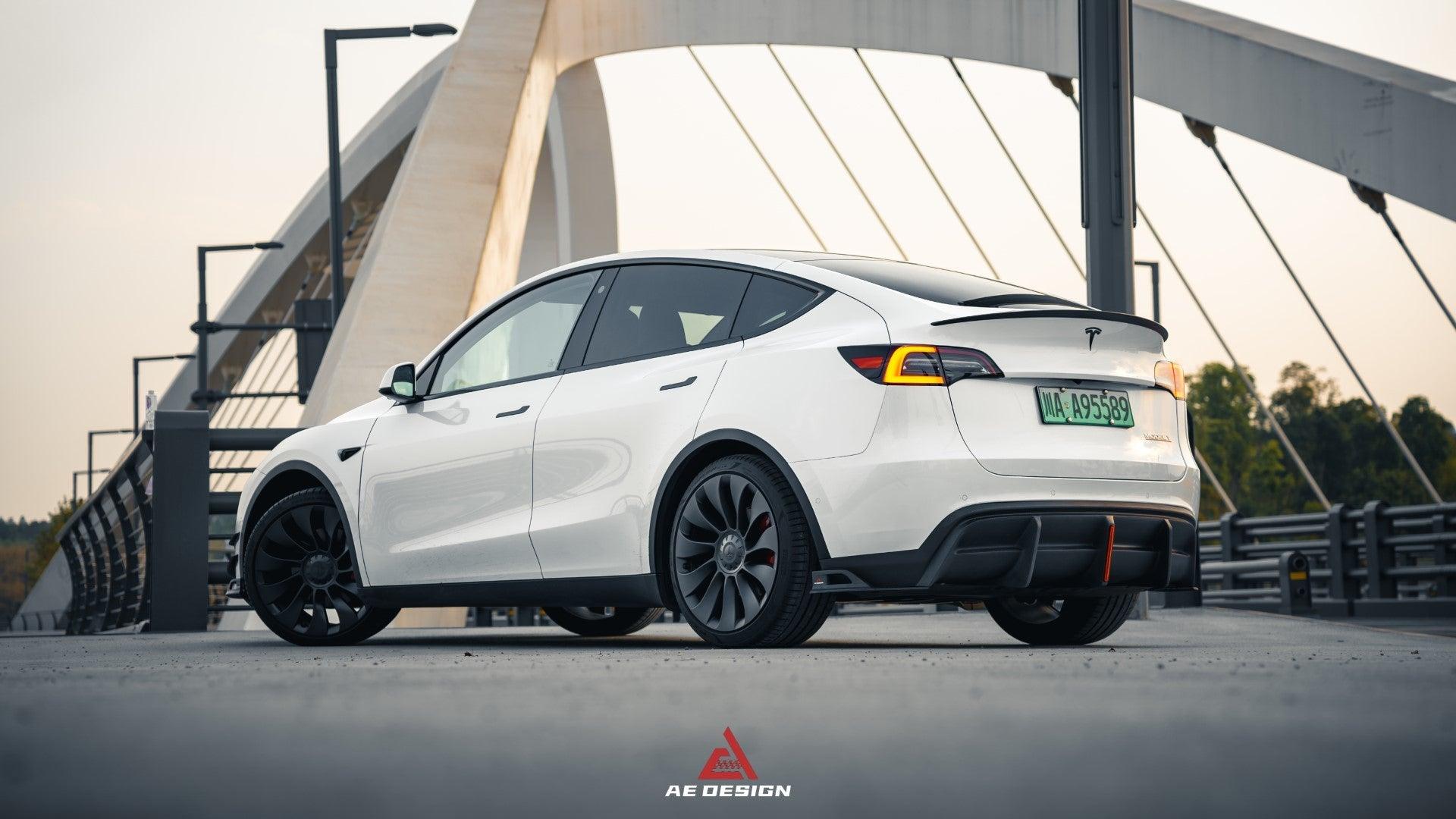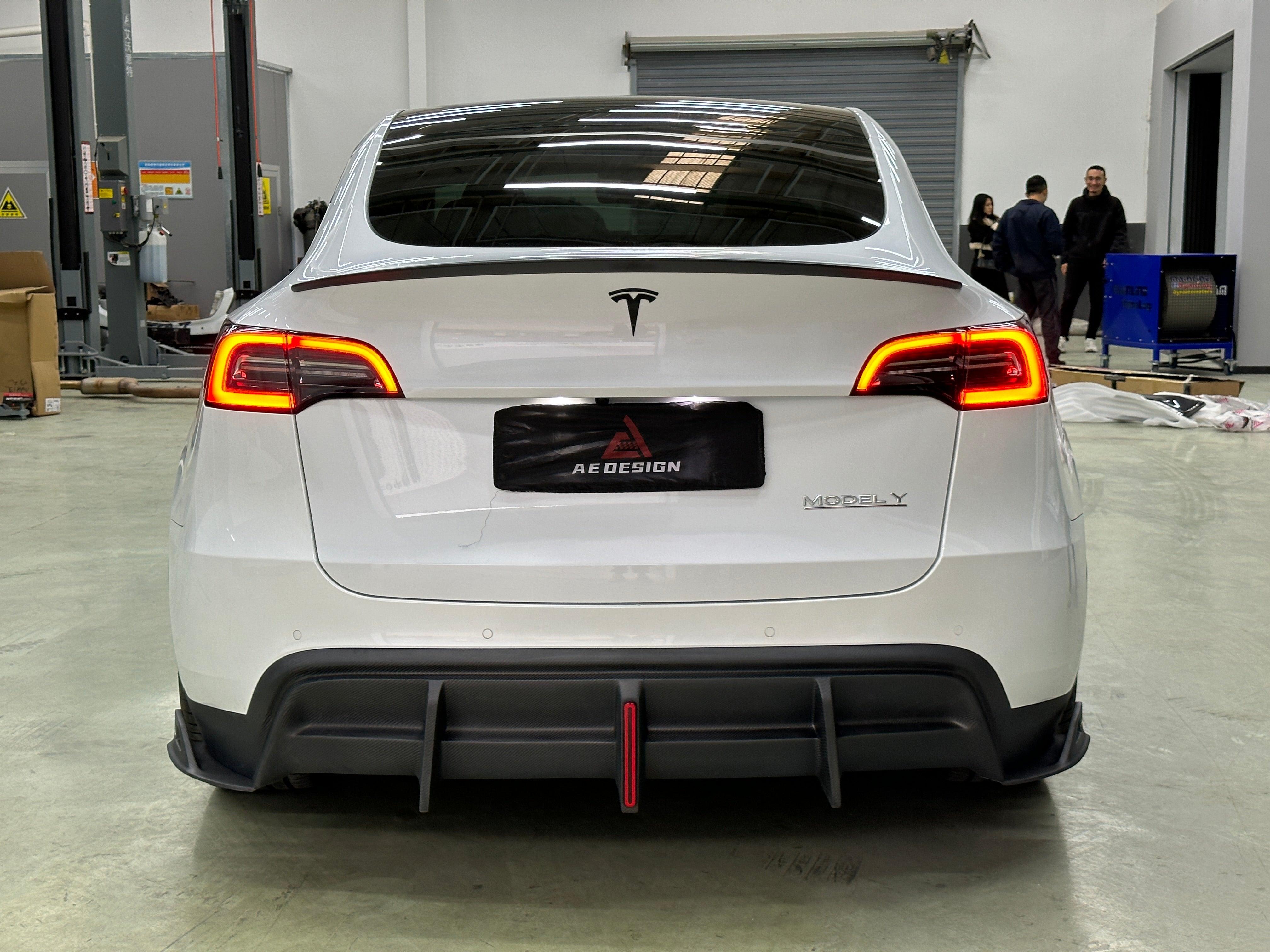 Upgrade Your Tesla Model Y 2020 2021 2022 2023 2024 2025 with Aftermarket Parts - AE Style Rear Diffuser Carbon Fiber from ArmorExtend