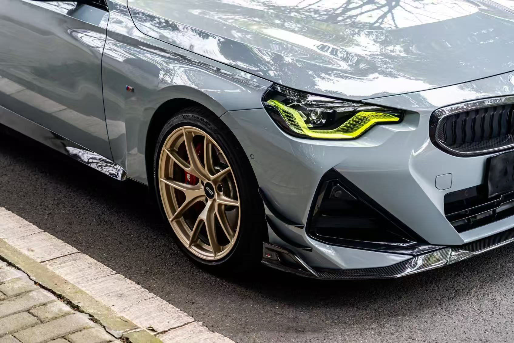 Upgrade Your BMW 2 Series G42 230i (With M-Package Bumper) M240i 2022 2023 2024 with Aftermarket Parts - AE Style Front Canards Pre-preg Carbon Fiber from ArmorExtend