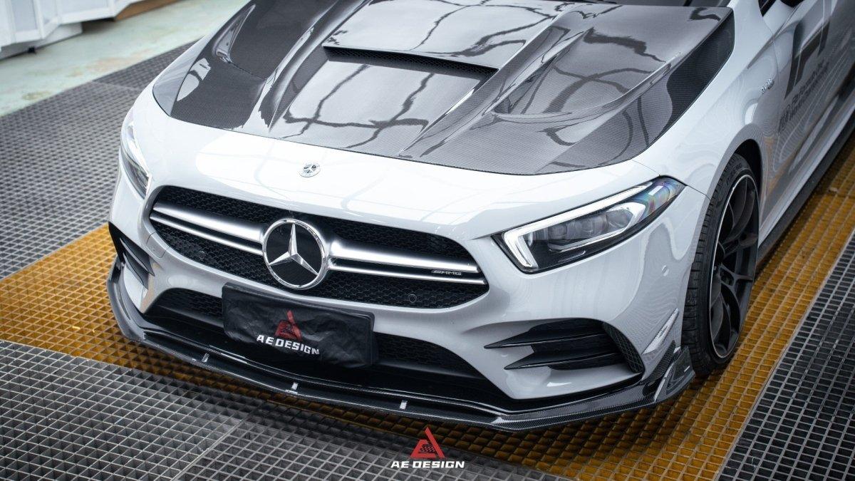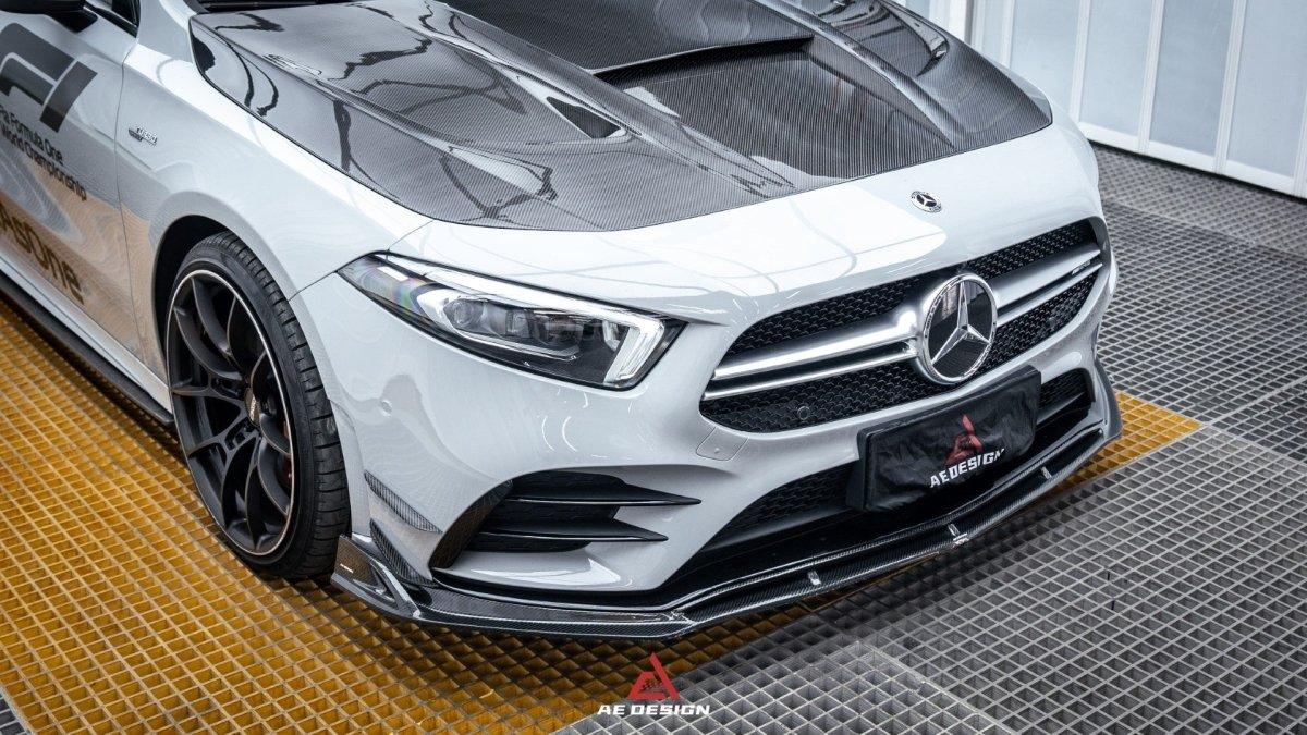 Upgrade Your Mercedes Benz A-Class A220 (with sport-package bumper) Pre-facelift / A35 / A35L W177 2019 2020 2021 2022 2023 2024 with Aftermarket Parts - AE Front Canards Carbon Fiber from ArmorExtend