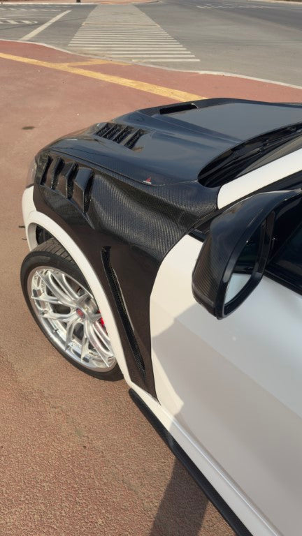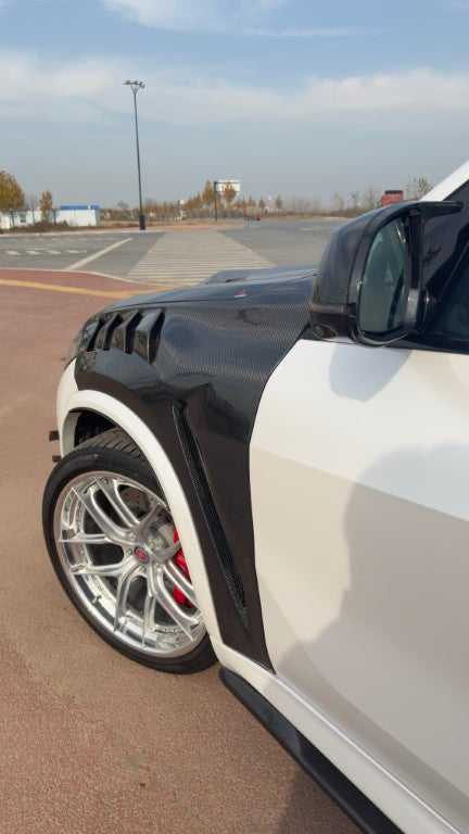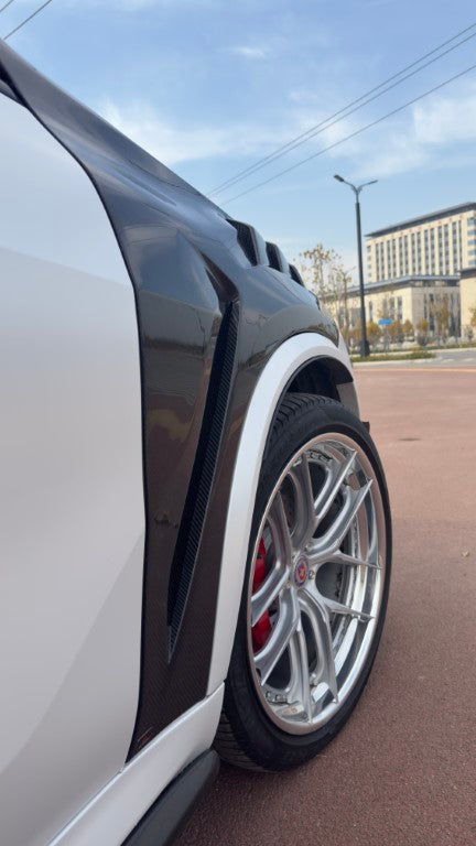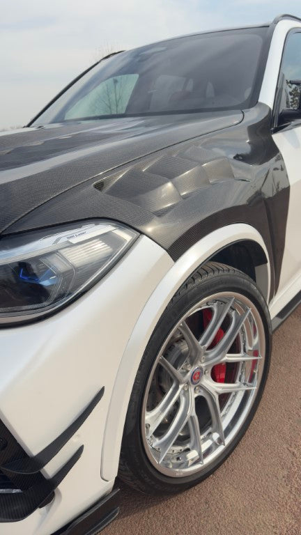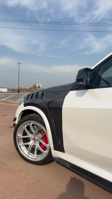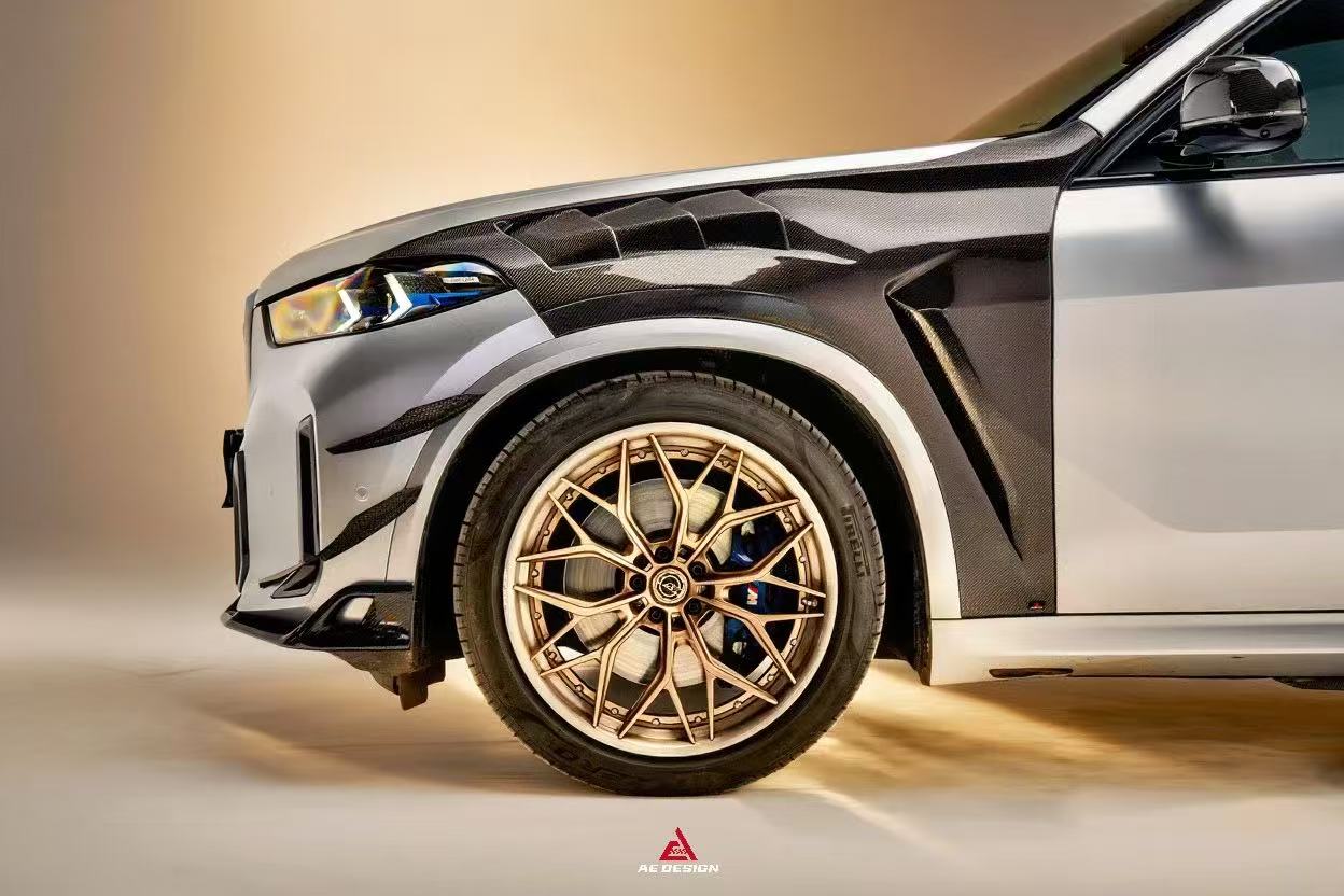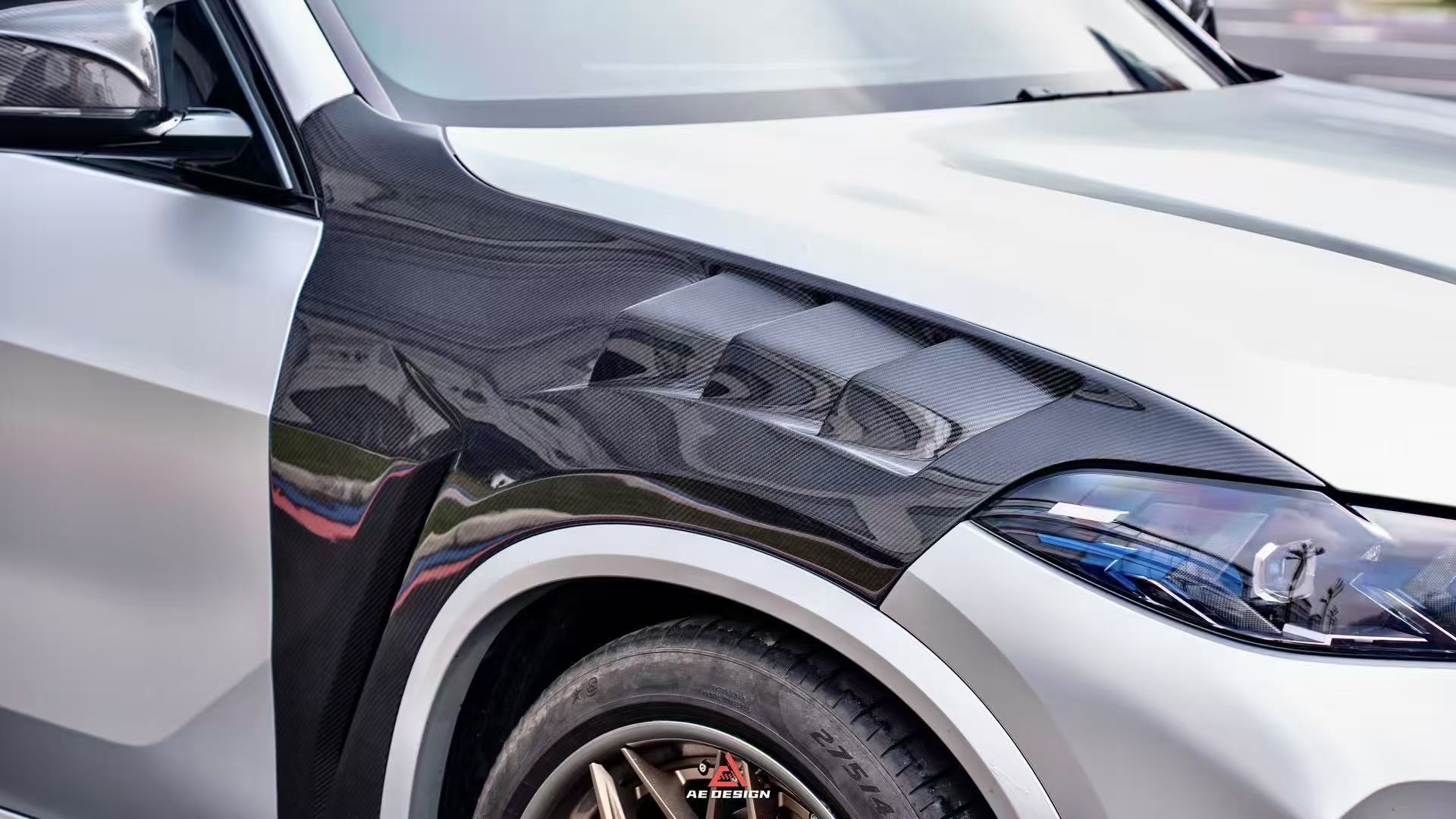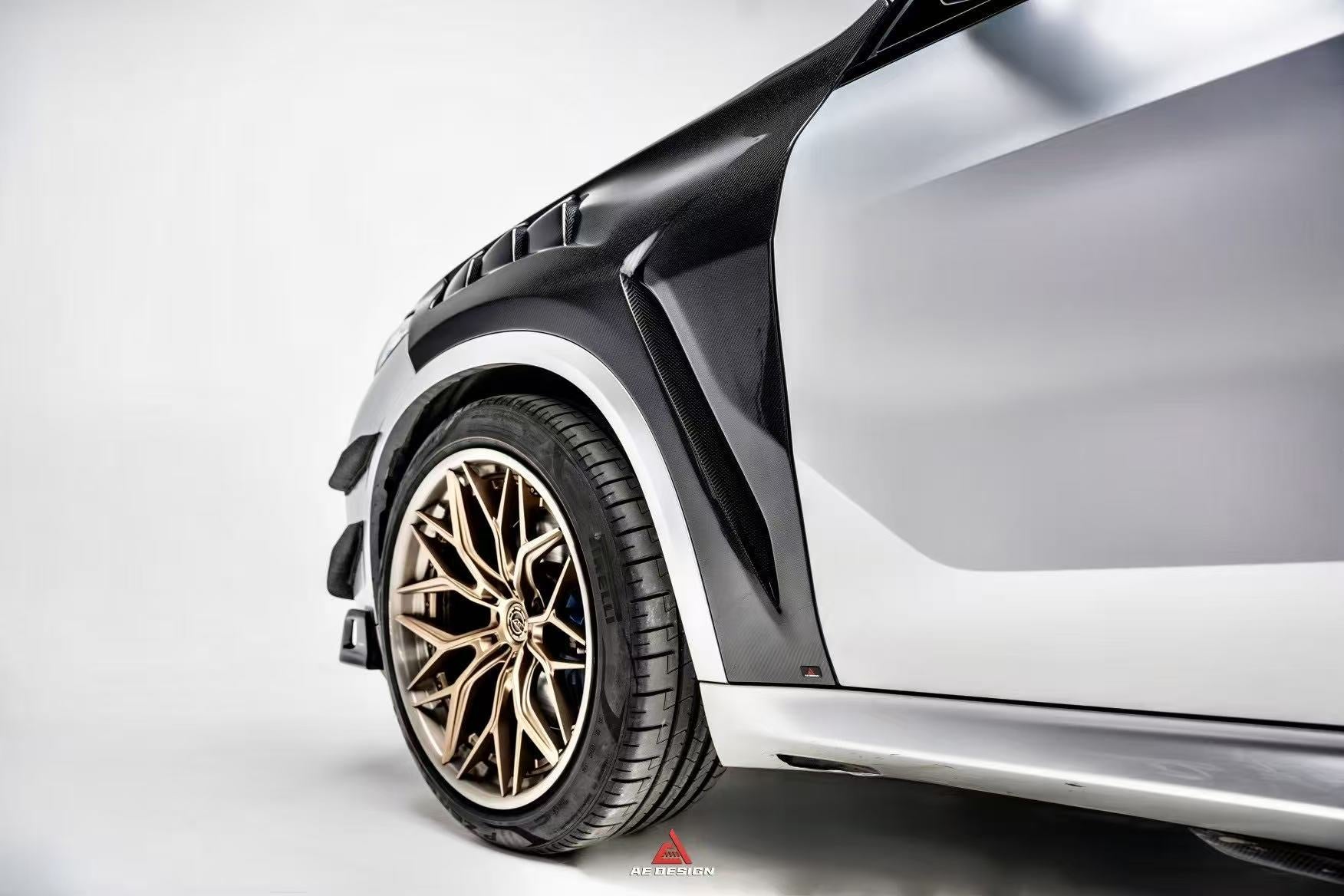 Upgrade Your BMW X5 G05 M50i X/S Drive 40i (with M-Package) (Fits Both Pre-LCI & LCI) 2019 2020 2021 2022 2023 2024 & X5M X5MC F95 (Fits Both Pre-LCI & LCI) 2020 2021 2022 2023 2024 with Aftermarket Parts - AE Front Fenders Dry Pre-Preg Carbon Fiber from ArmorExtend