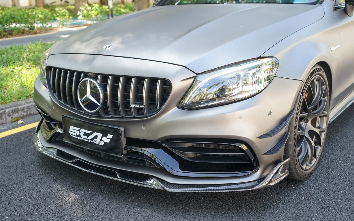 Upgrade Your Mercedes Benz C-Class C63S C63 AMG W205 Coupe Convertible 2015 2016 2017 2018 2019 2020 2021 2022 2023 (suitable for both pre-facelift and facelift) with Aftermarket Parts - AE Front Lip Carbon Fiber from ArmorExtend