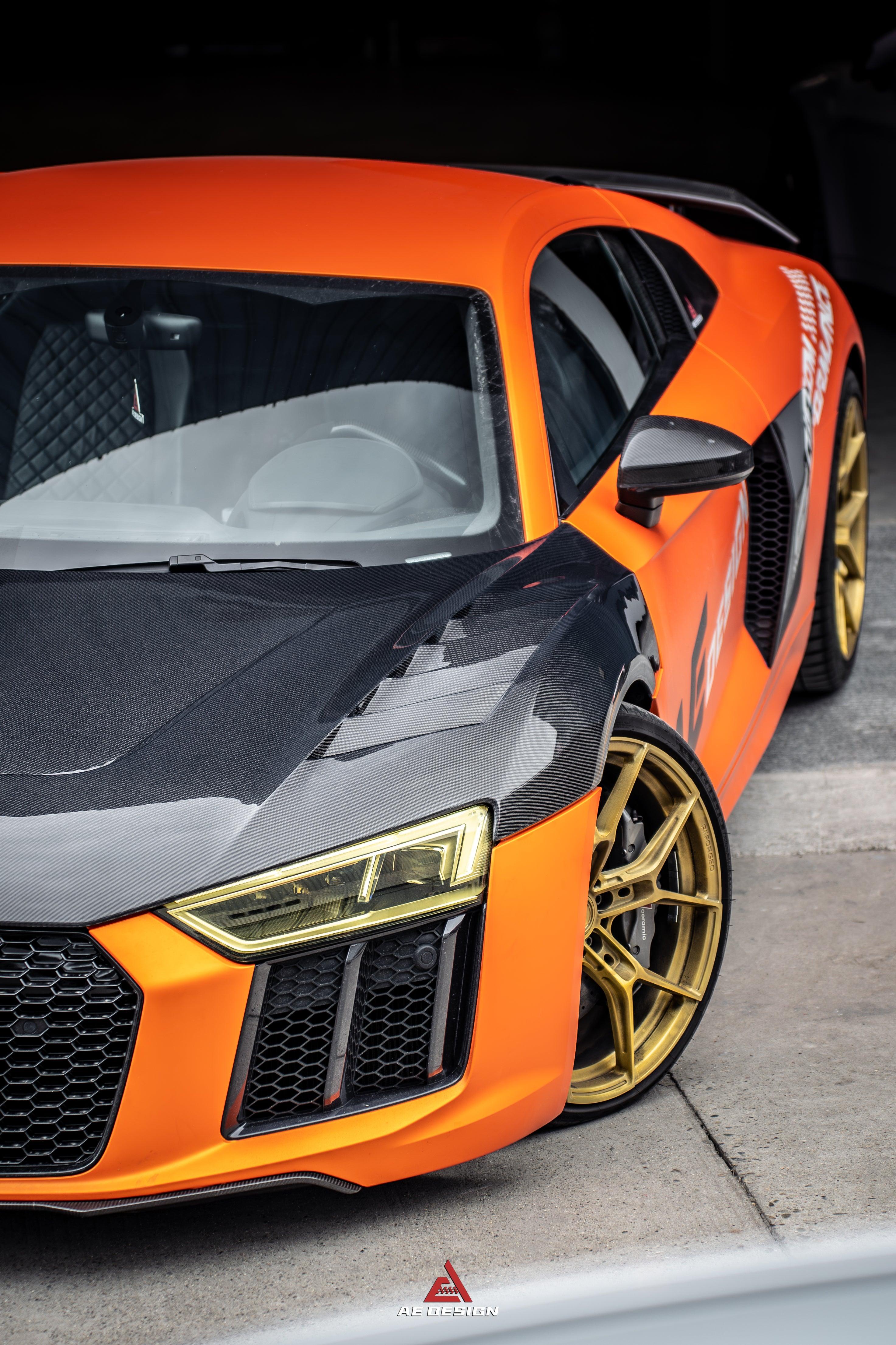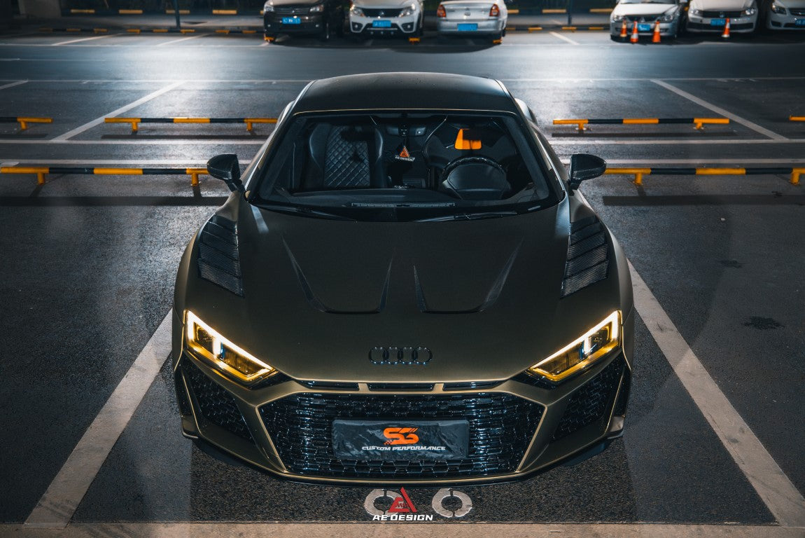 Upgrade Your Audi R8 Gen 2 2017 2018 2019 2020 2021 2022 2023 with Aftermarket Parts - AE Style Hood Bonnet Double-sided Carbon Fiber / Partial Carbon Fiber from ArmorExtend