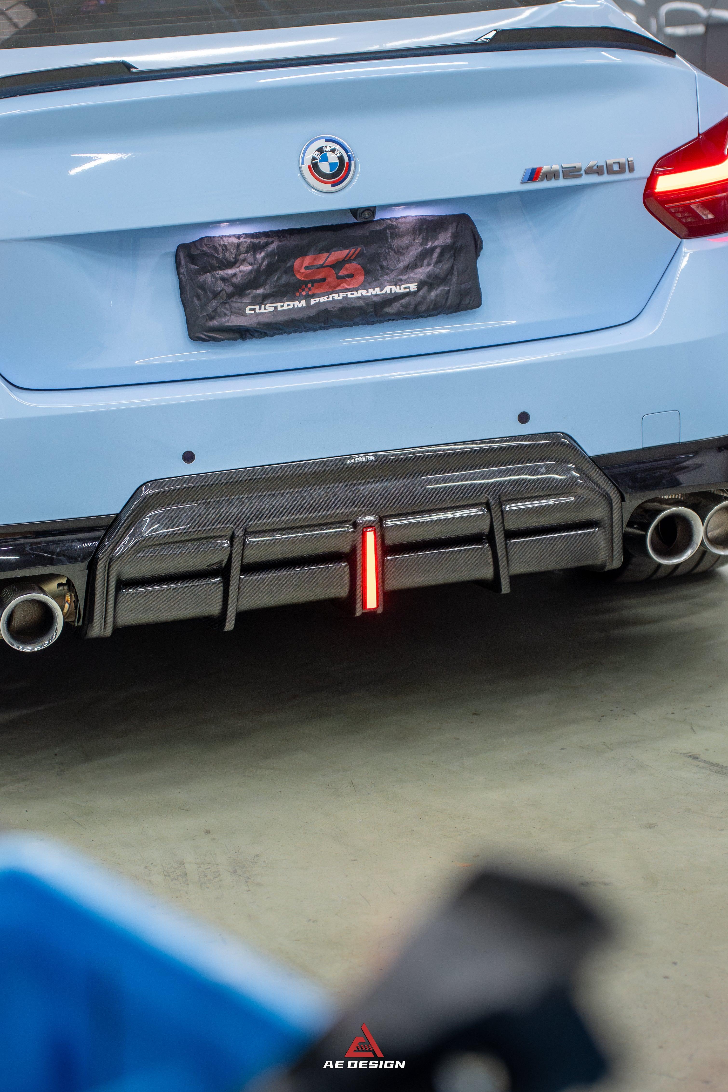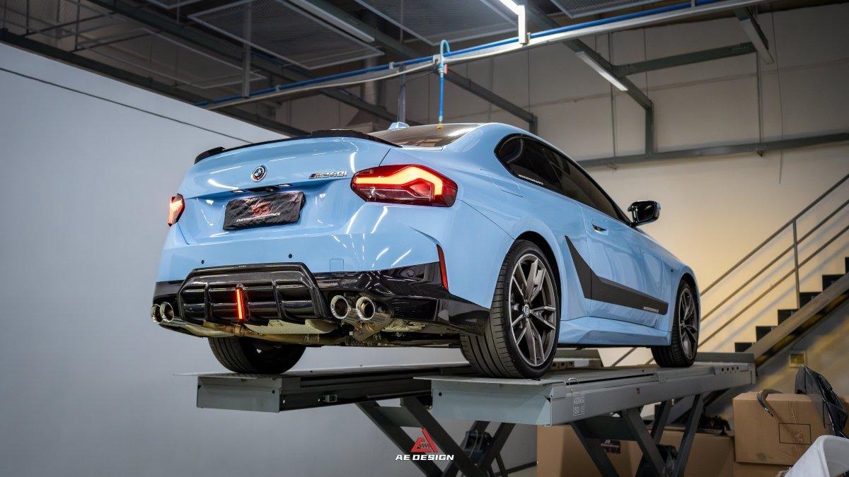 Upgrade Your BMW 2 Series G42 230i (With M-Package Bumper) M240i 2022 2023 2024 with Aftermarket Parts - AE Style Rear Diffuser & Canards Pre-preg Carbon Fiber from ArmorExtend