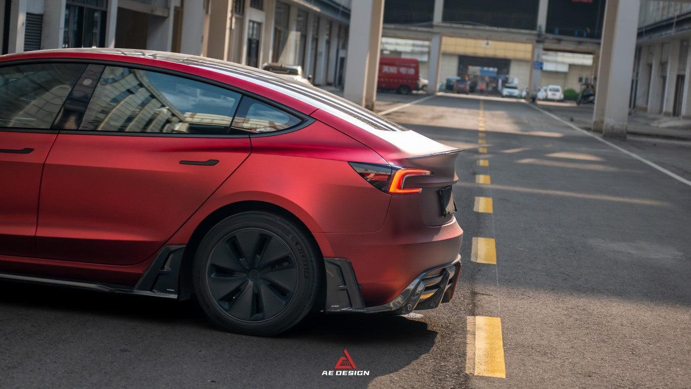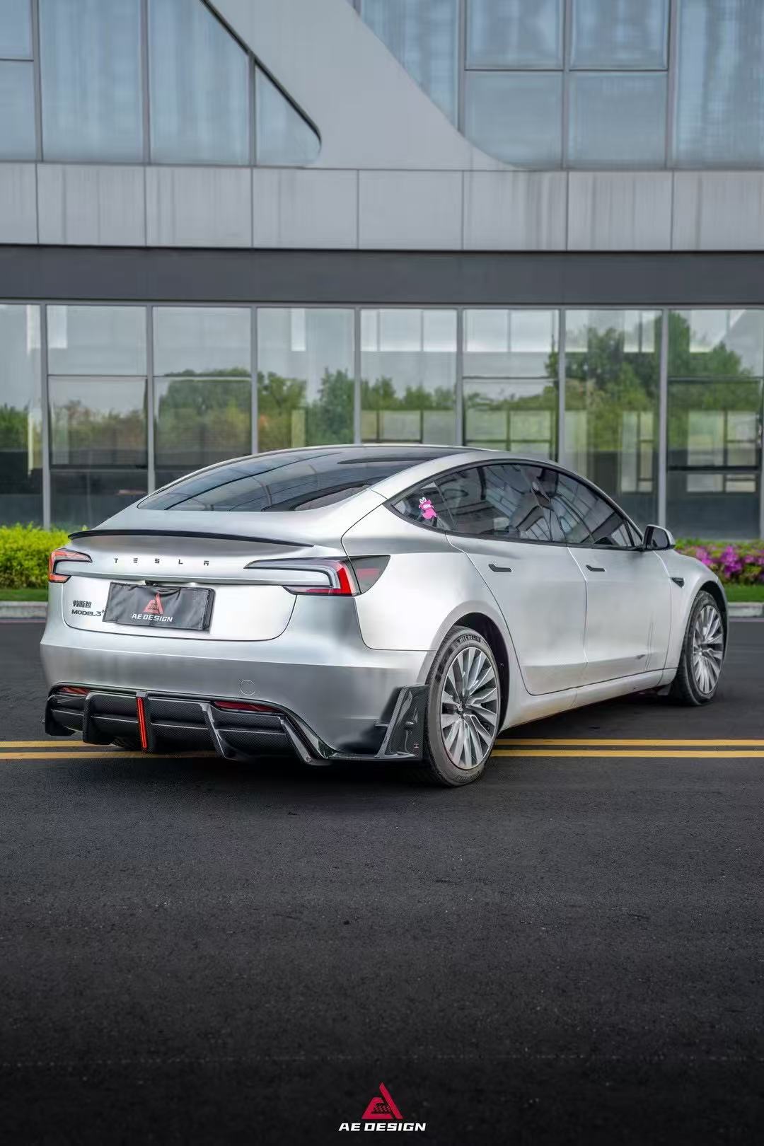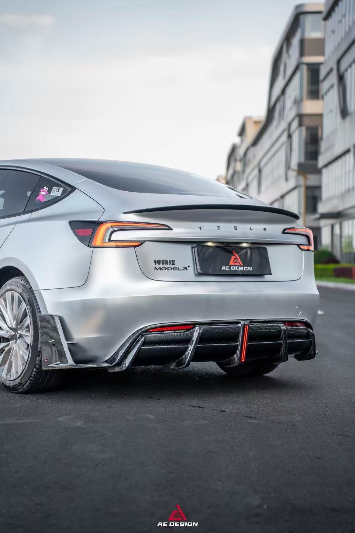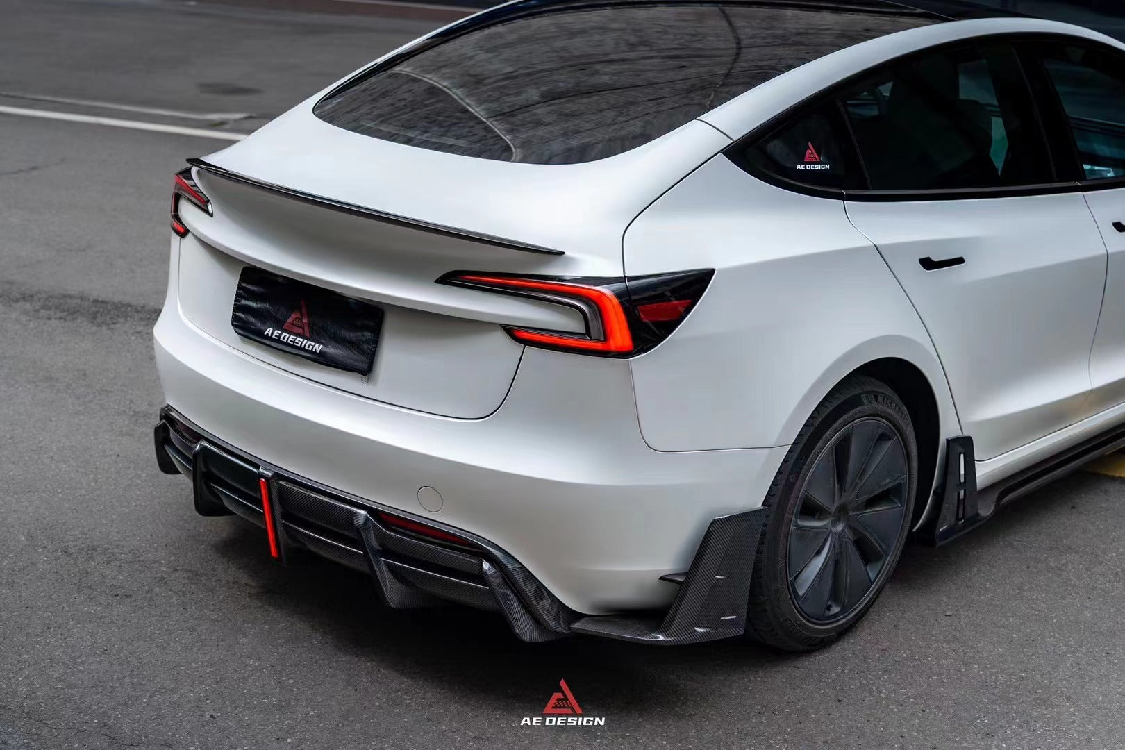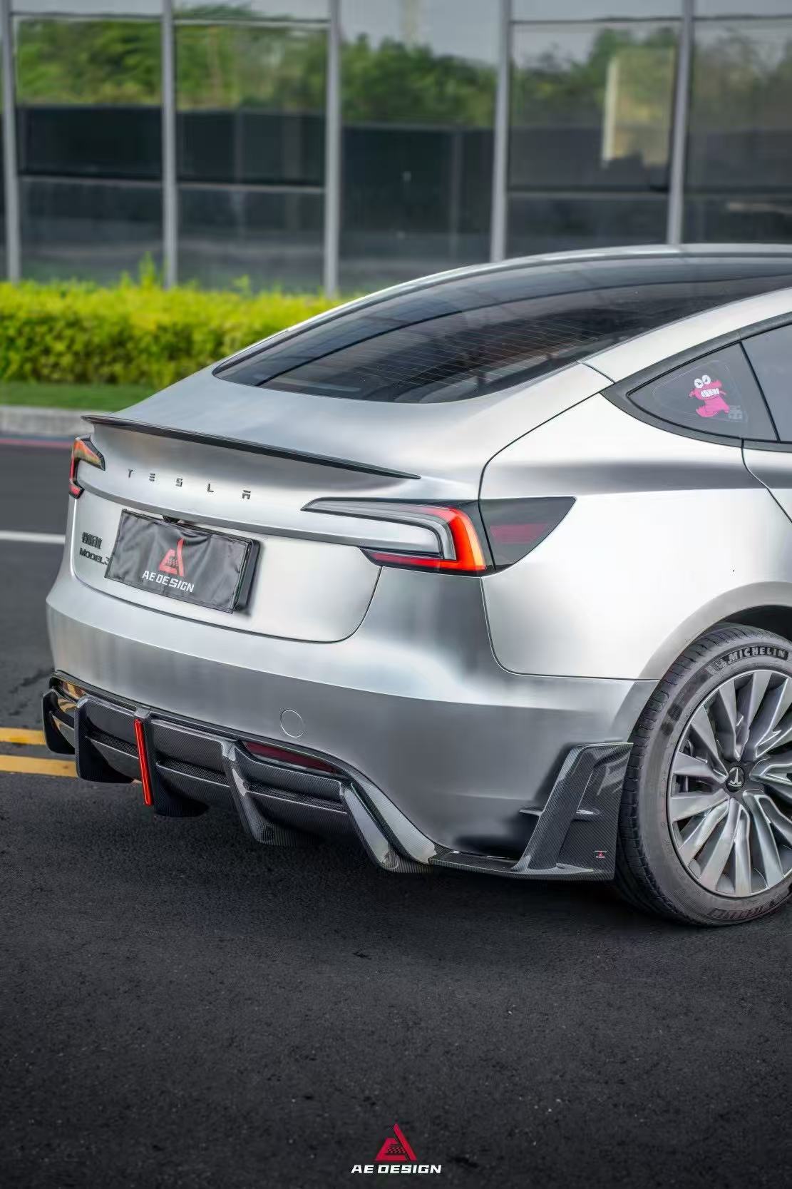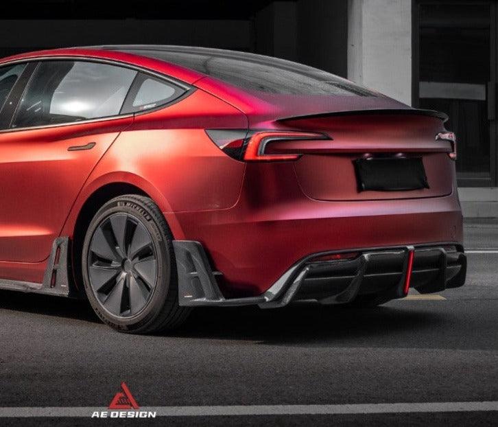 Upgrade Your Tesla Model 3 Highland / Performance 2024-ON with Aftermarket Parts - AE Style Rear Diffuser & Canards Carbon Fiber from ArmorExtend