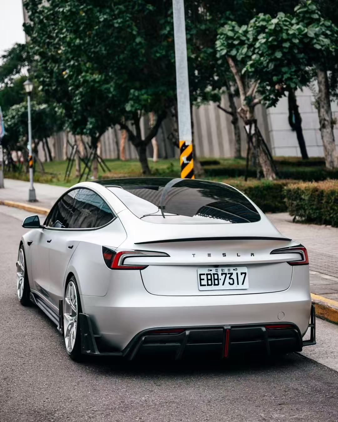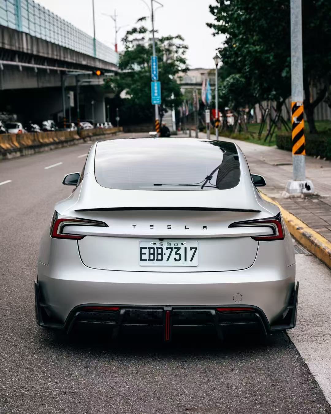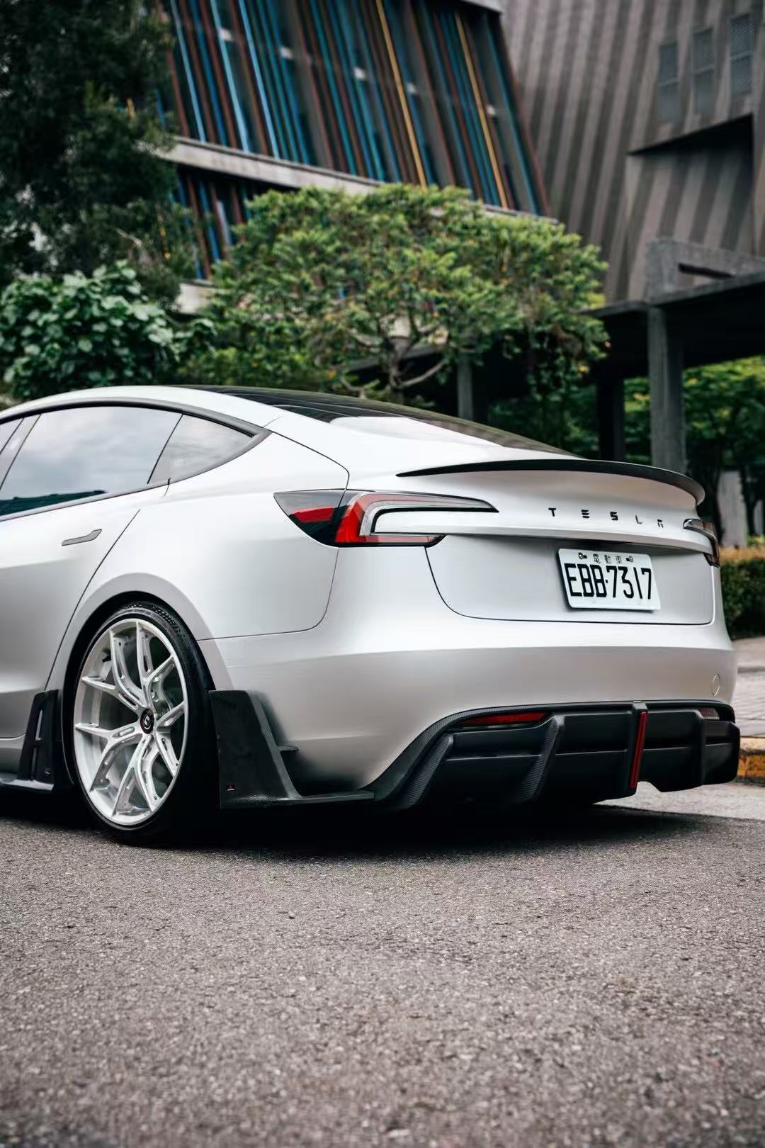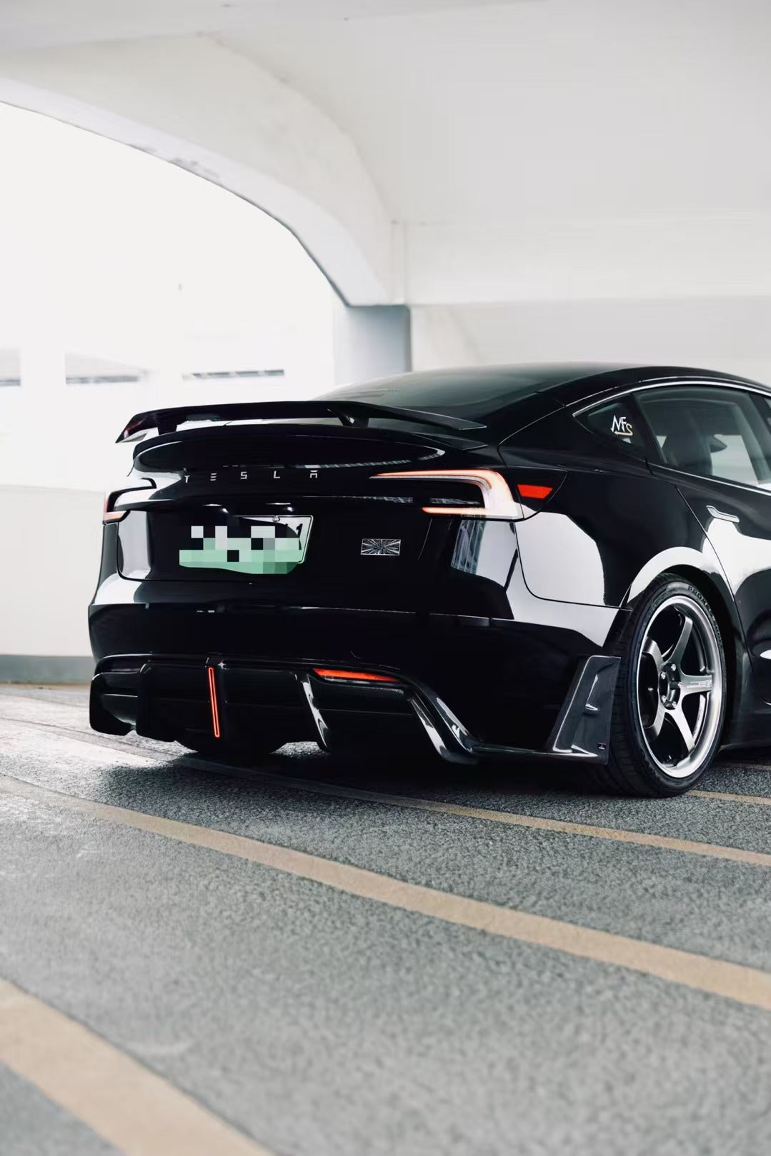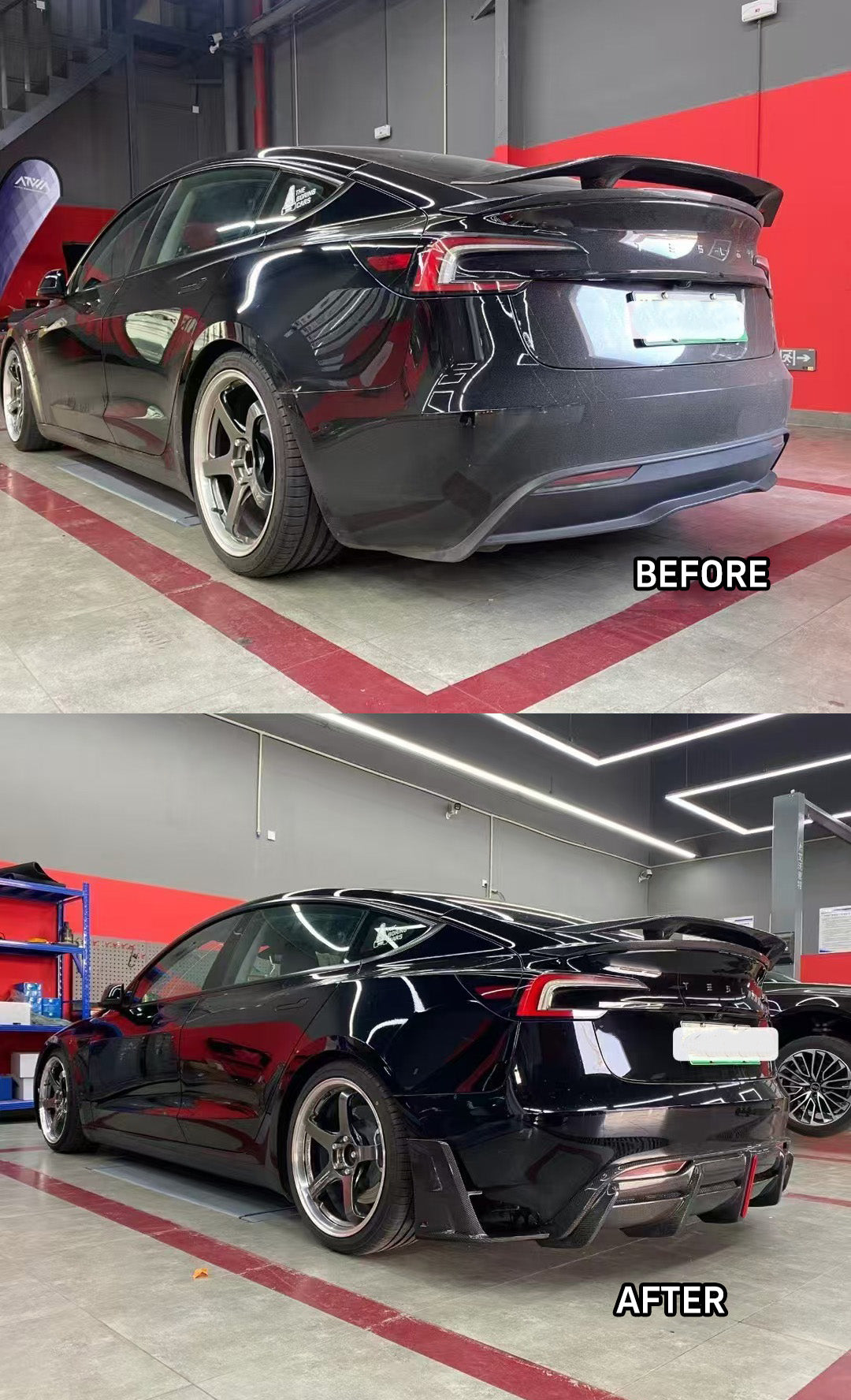 Upgrade Your Tesla Model 3 Highland / Performance 2024-ON with Aftermarket Parts - AE Style Rear Diffuser & Canards Carbon Fiber from ArmorExtend