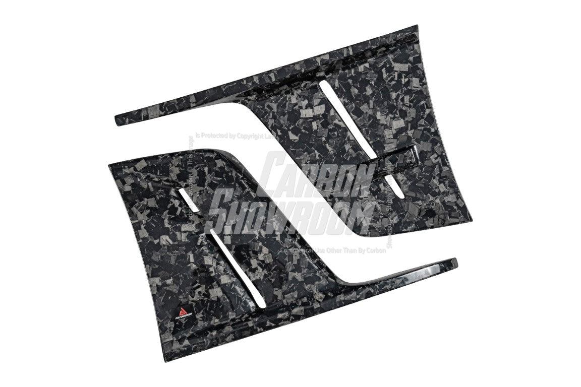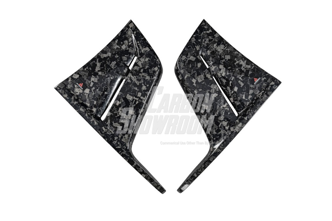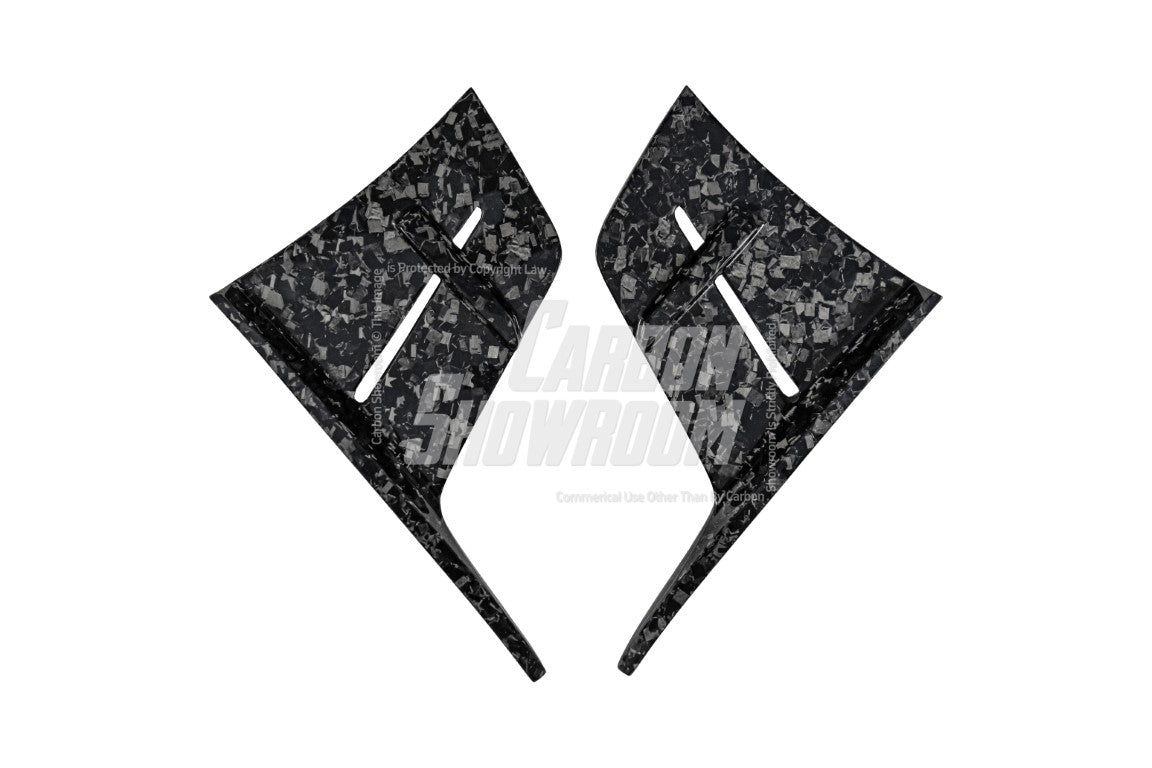 Forged (20% extra charge, made to order): Forged carbon fiber - a composite material made from randomly arranged, short carbon fiber strands combined with resin and compressed in a mold. Forged carbon fiber offers greater design flexibility compared to 3K woven carbon fiber, as it can be molded into more complex shapes without compromising structural integrity. Its random fiber orientation reduces weak points caused by the directional patterns in 3K weaves, enhancing impact resistance. Additionally, it has a unique aesthetic appeal, with a marbled texture that stands out from the uniform weave of 3K carbon fiber.