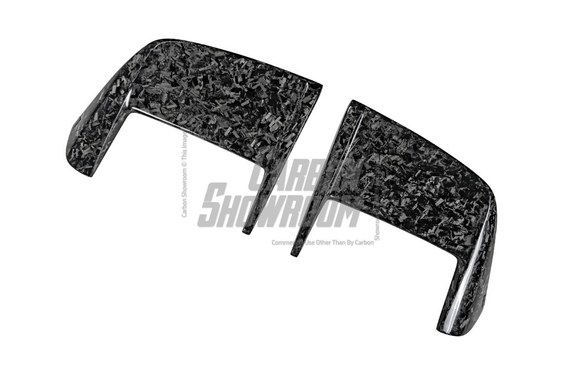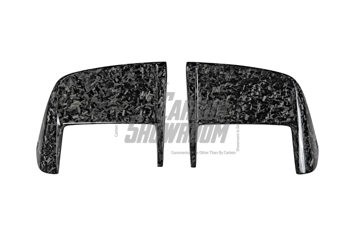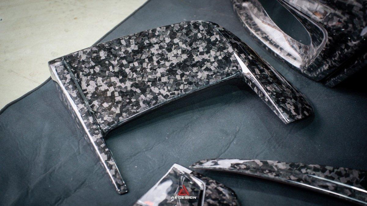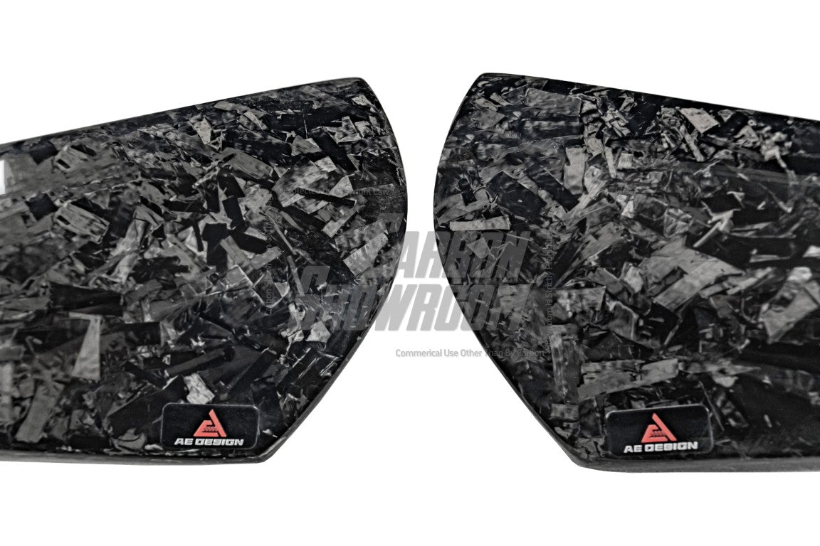Woven 3k (default option): Woven Carbon Fiber (Standard 2x2 or 3k) - the most common carbon fiber weave. 2x2 weave woven carbon fiber is the default if listing does not specify the pattern. Woven 3K carbon fiber is a lightweight and high-strength material made from bundles of 3,000 carbon filaments (referred to as "3K") that are woven into a fabric pattern, typically in a twill or plain weave. It offers excellent tensile strength, stiffness, and durability while maintaining a sleek, smooth appearance with a distinctive checkerboard pattern. ? Forged (20% extra charge, made to order): Forged carbon fiber - a composite material made from randomly arranged, short carbon fiber strands combined with resin and compressed in a mold. Forged carbon fiber offers greater design flexibility compared to 3K woven carbon fiber, as it can be molded into more complex shapes without compromising structural integrity. Its random fiber orientation reduces weak points caused by the directional patterns in 3K weaves, enhancing impact resistance. Additionally, it has a unique aesthetic appeal, with a marbled texture that stands out from the uniform weave of 3K carbon fiber.