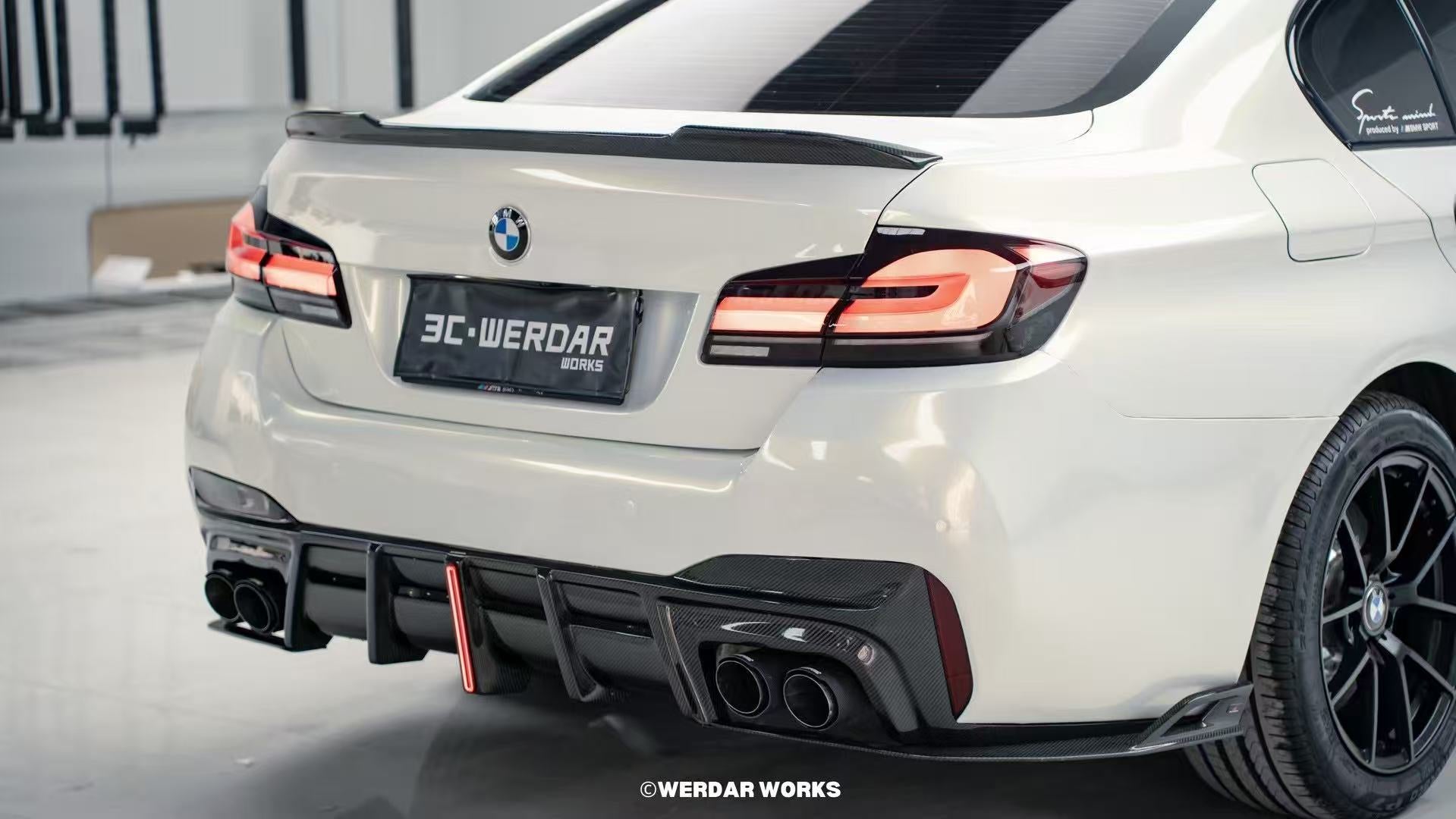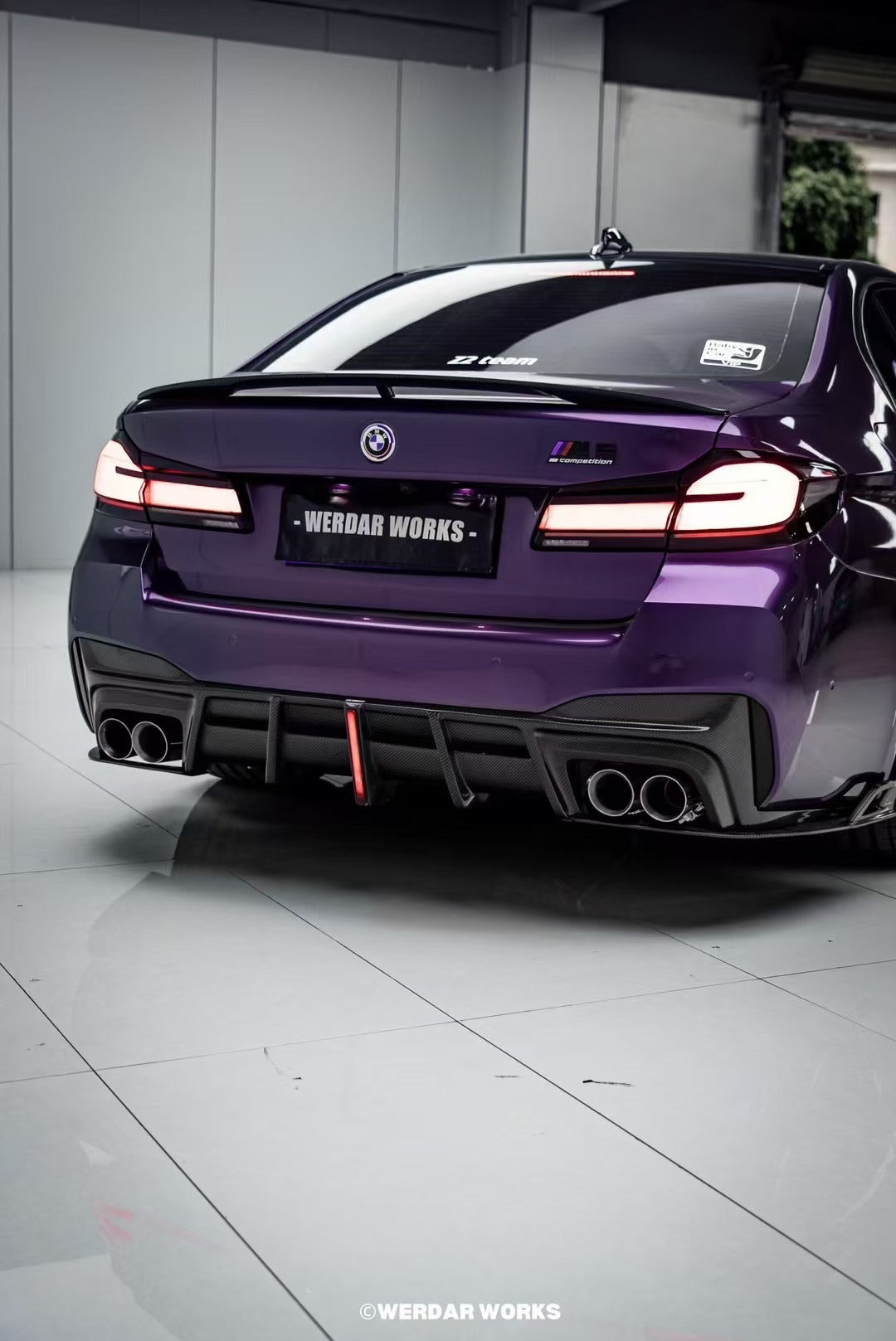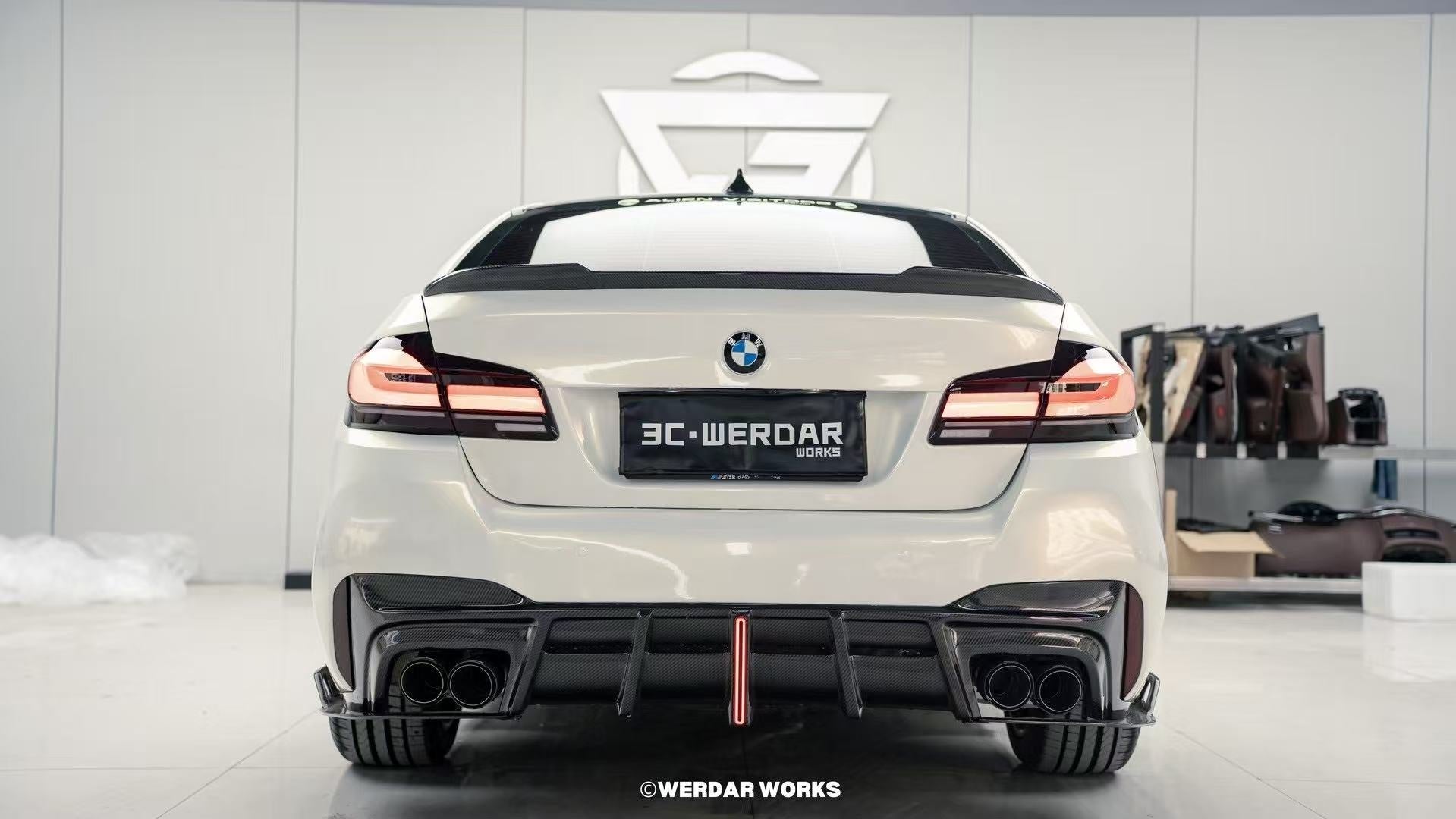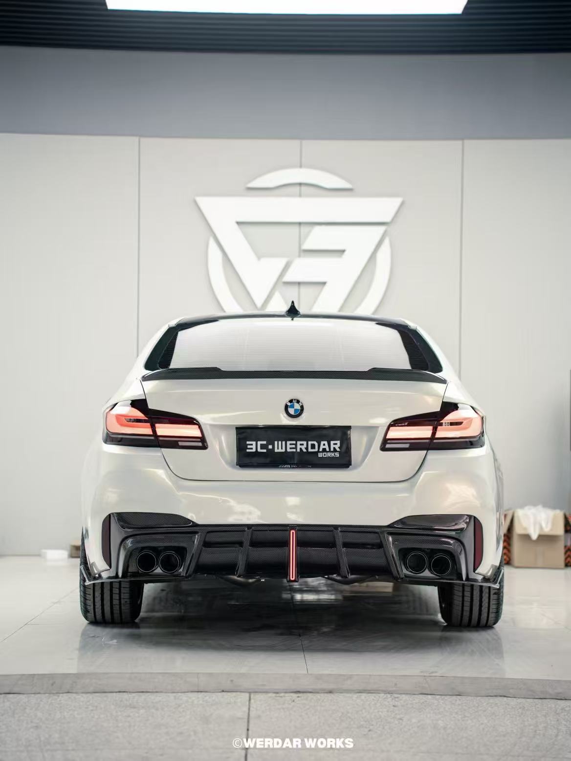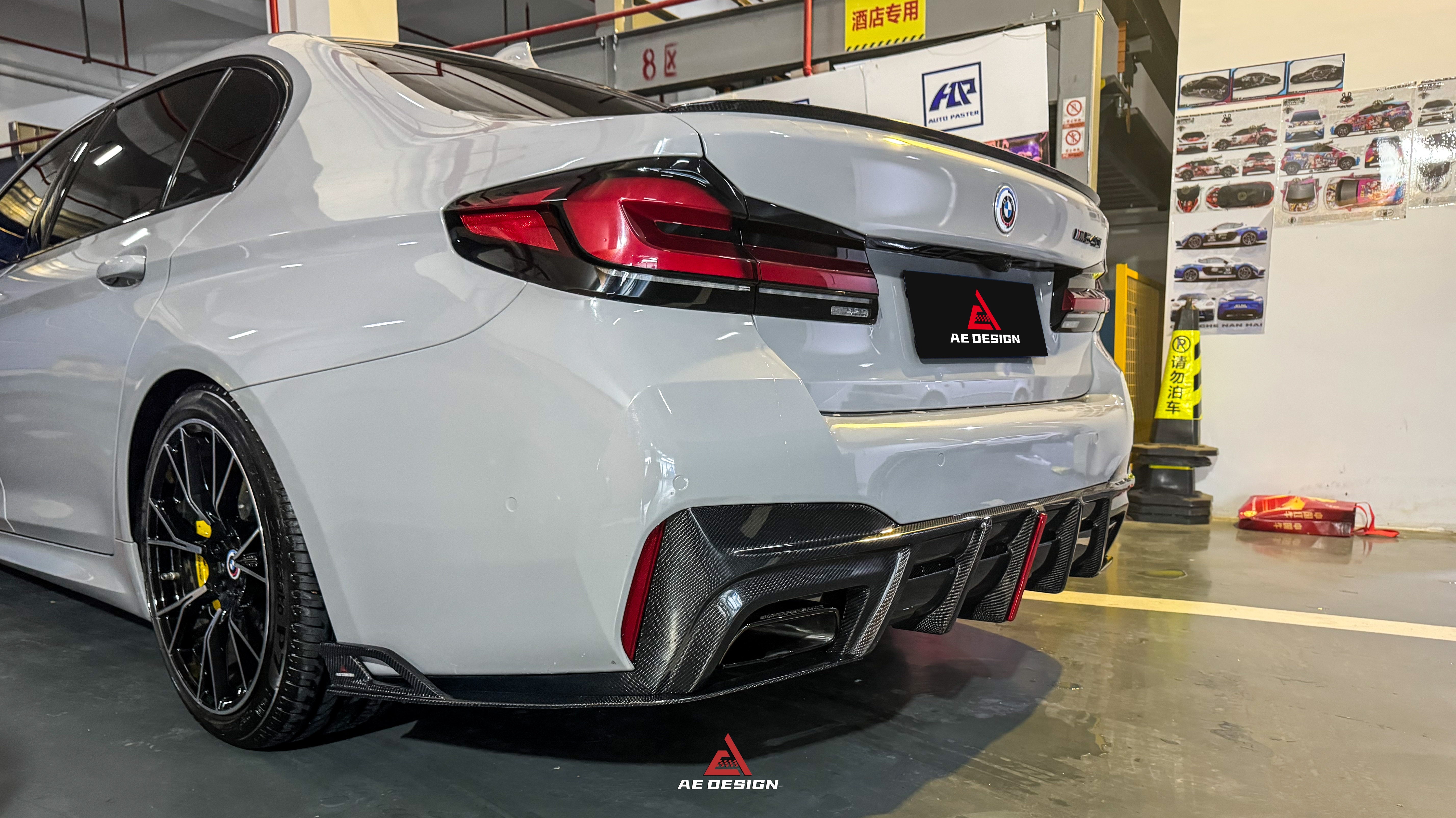 Upgrade Your BMW M5/M5C F90 (Fits Both Pre-LCI & LCI) 2018 2019 2020 2021 2022 2023 2024 & 5 Series G30 540i (With M-Package Bumper) M550i (Fits Both Pre-LCI & LCI) 2017 2018 2019 2020 2021 2022 2023 with Aftermarket Parts - AE V2 Rear Diffuser & Canards Carbon Fiber from ArmorExtend