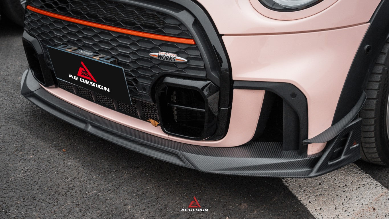 Upgrade Your MINI Cooper JCW (John Cooper Works) F56 LCI 2022 2023 2024 with Aftermarket Parts - AE Style Front Canards Carbon Fiber from ArmorExtend