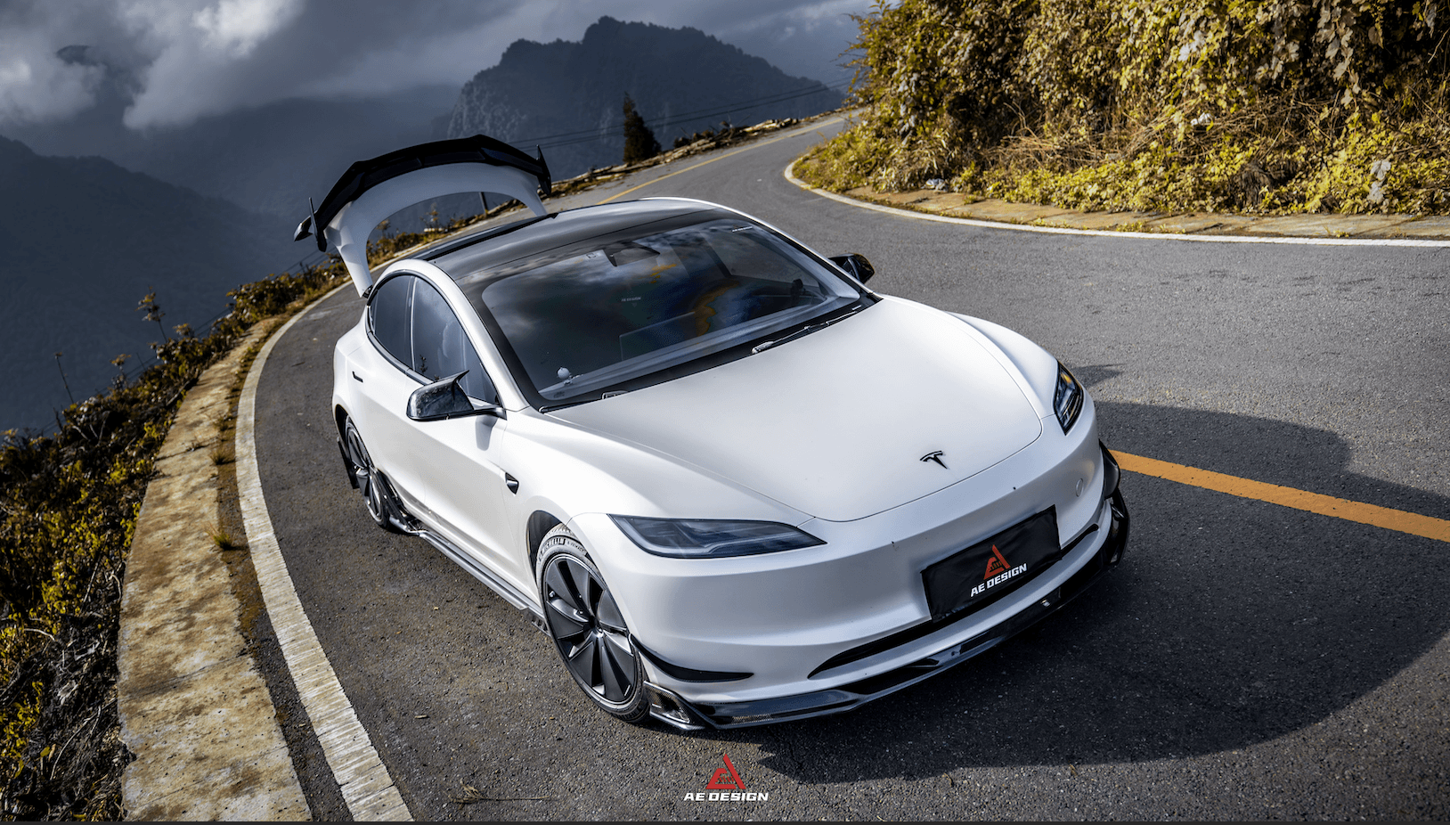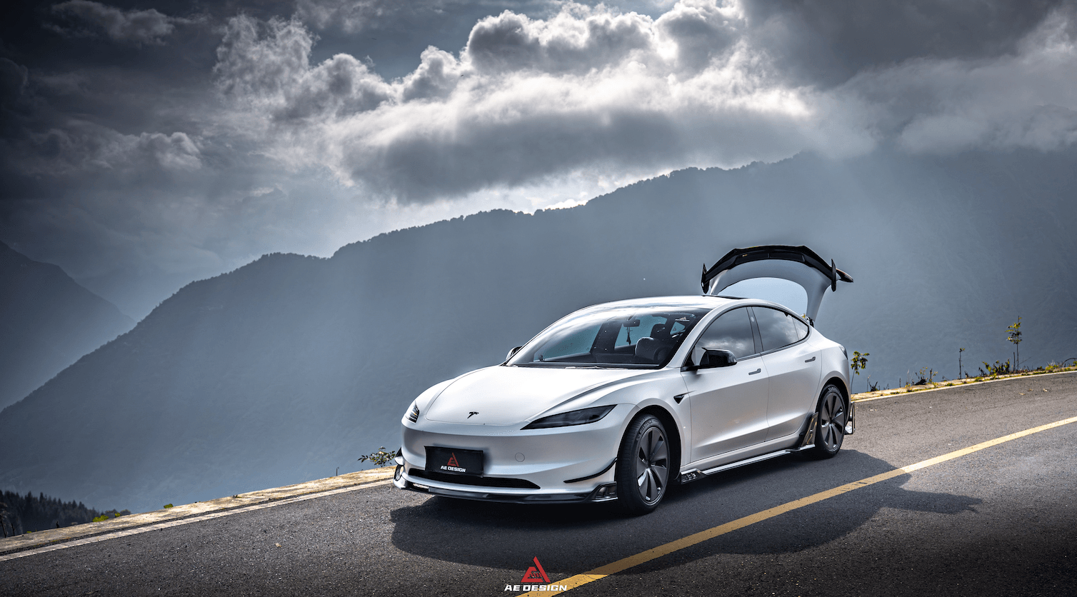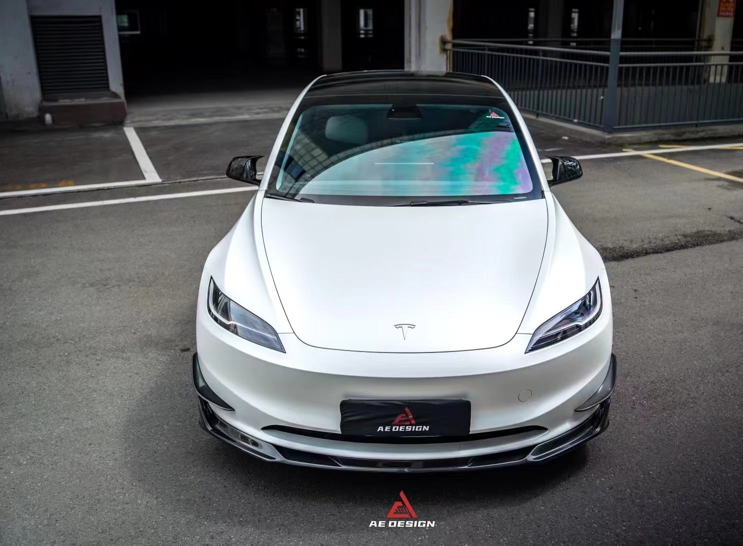Upgrade Your Tesla Model 3 Highland 2024-ON with Aftermarket Parts - AE Style Front Canards Carbon Fiber from ArmorExtend