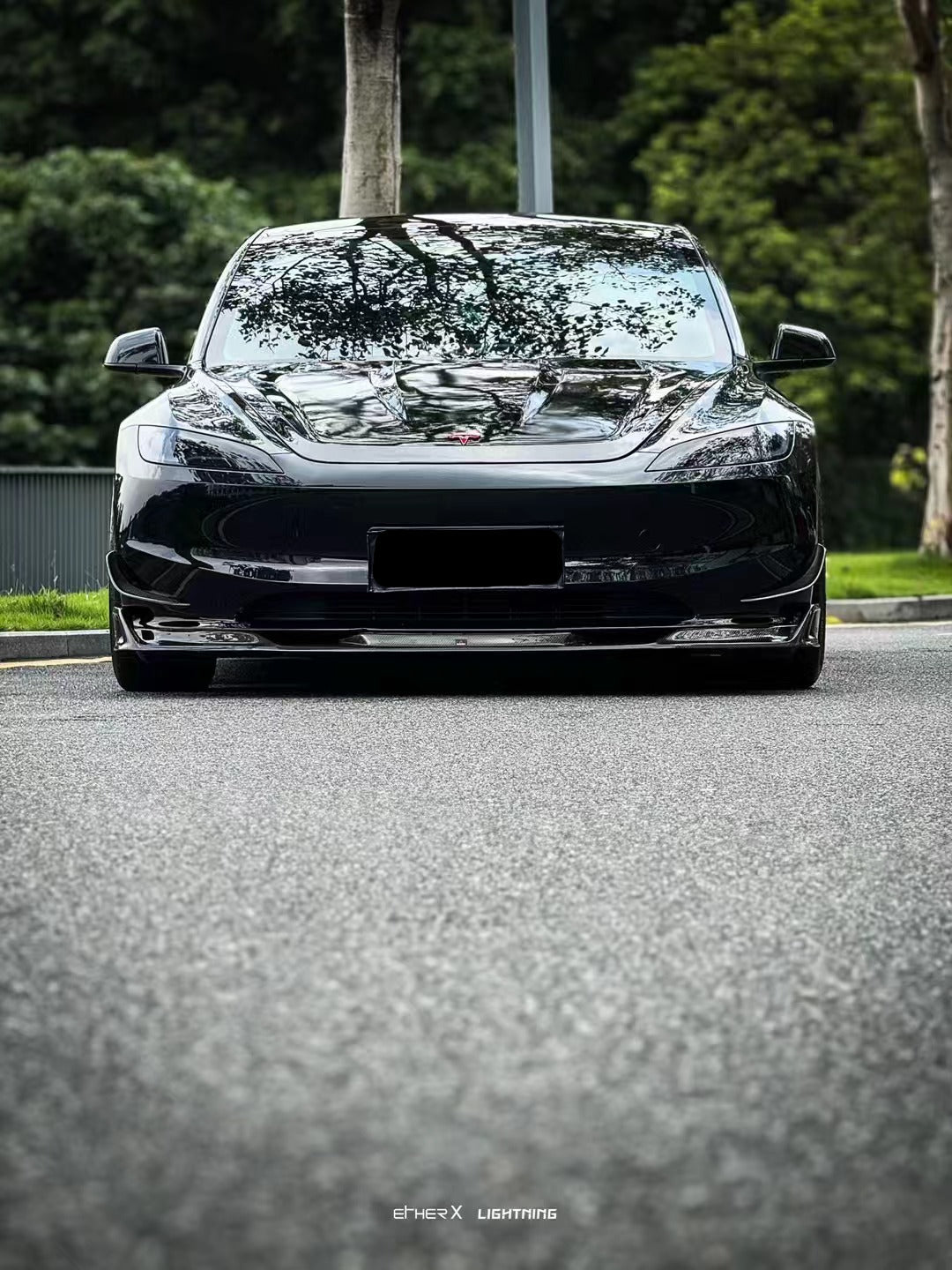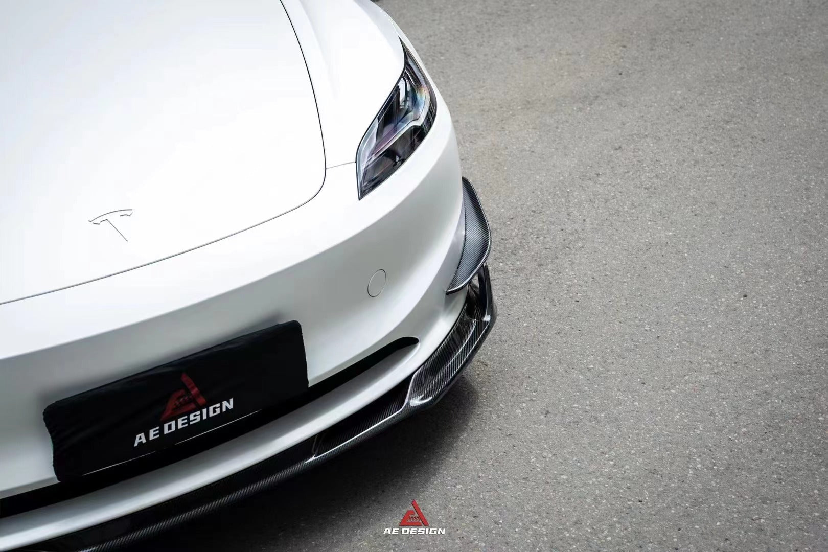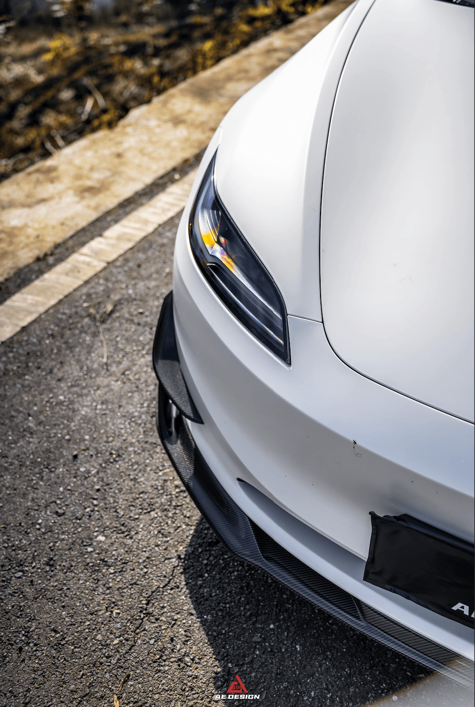Upgrade Your Tesla Model 3 Highland 2024-ON with Aftermarket Parts - AE Style Front Lip Carbon Fiber from ArmorExtend