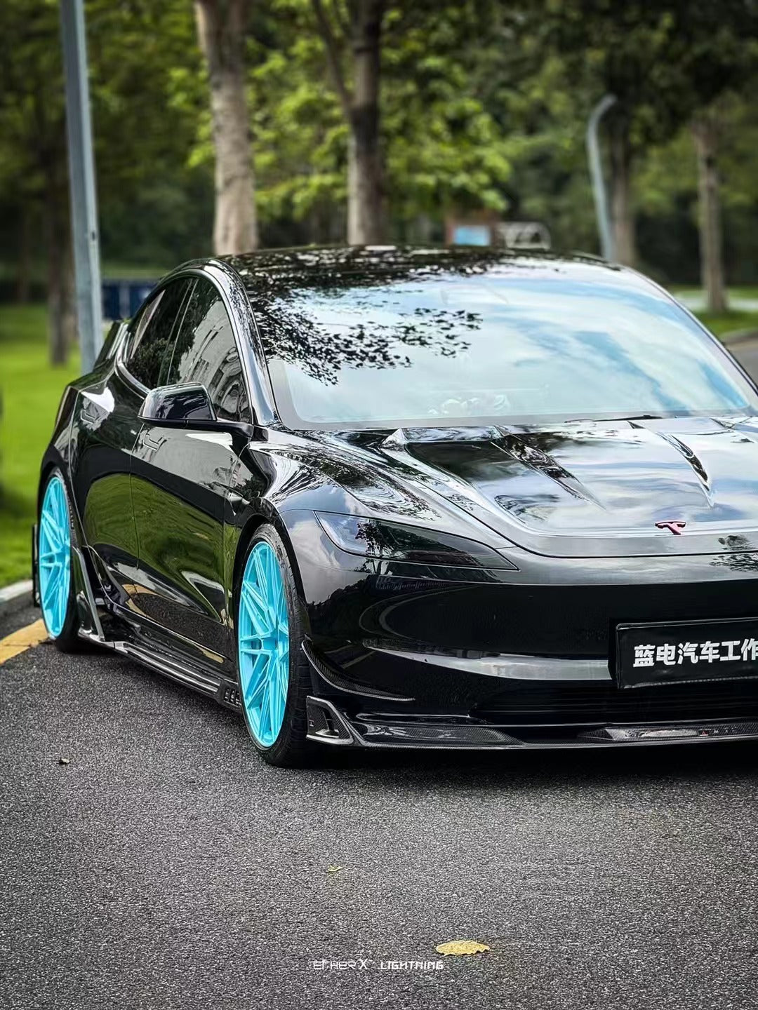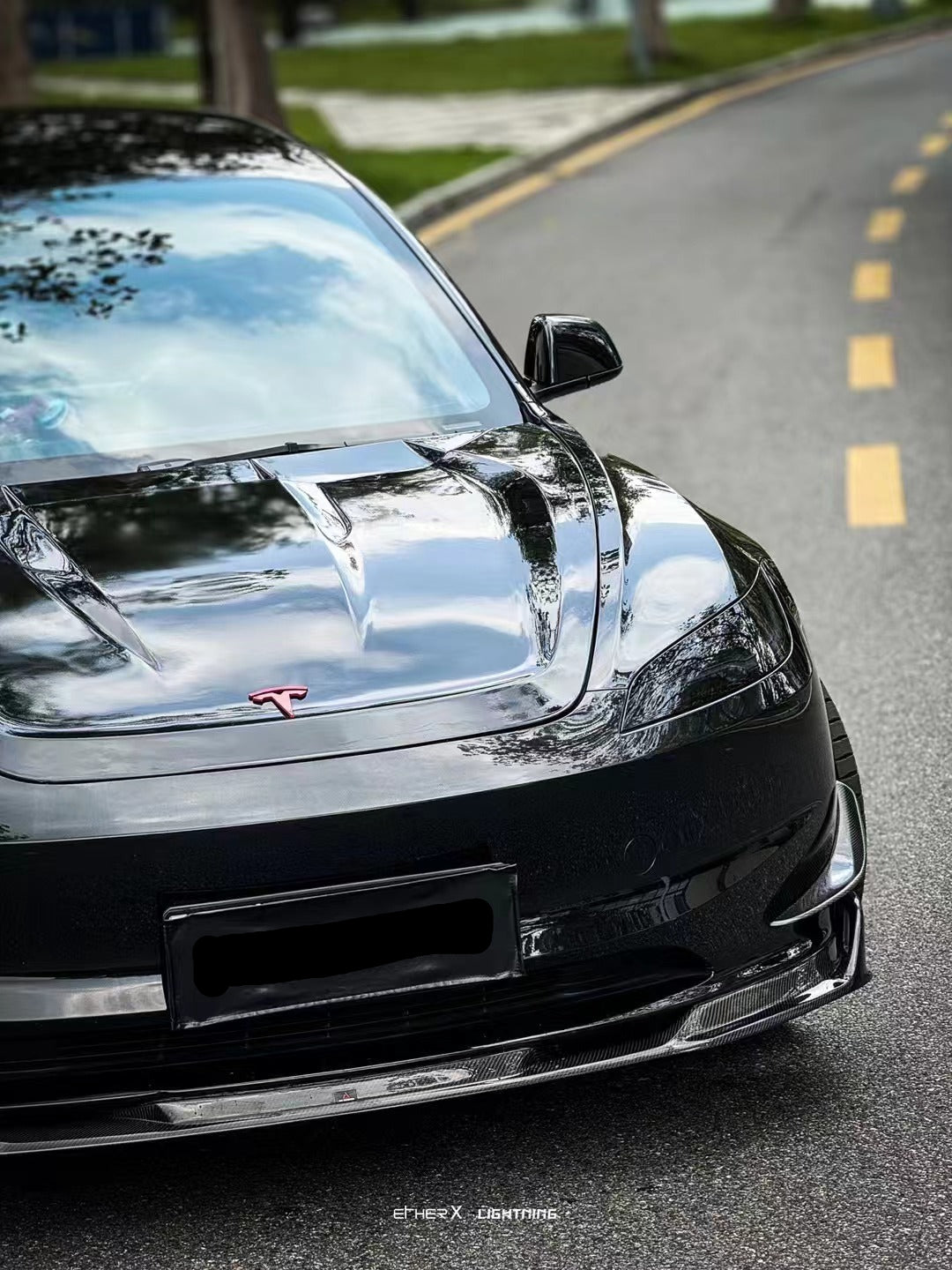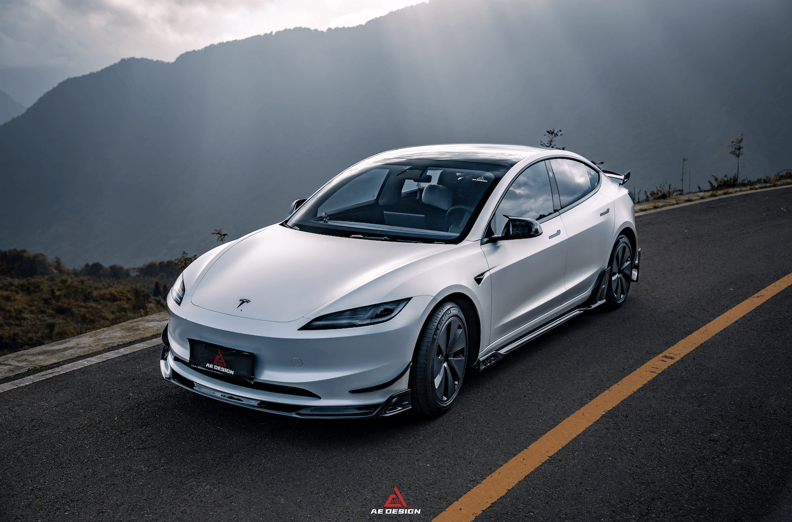 Upgrade Your Tesla Model 3 Highland 2024-ON with Aftermarket Parts - AE Style Front Lip Carbon Fiber from ArmorExtend