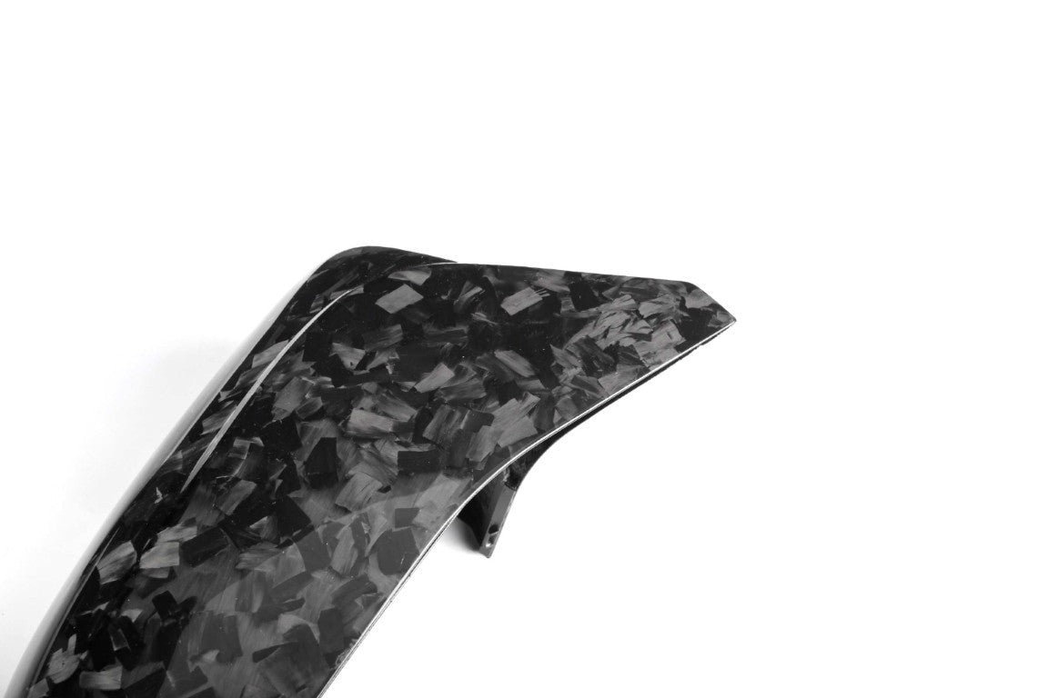 Forged (20% extra charge, made to order): Forged carbon fiber - a composite material made from randomly arranged, short carbon fiber strands combined with resin and compressed in a mold. Forged carbon fiber offers greater design flexibility compared to 3K woven carbon fiber, as it can be molded into more complex shapes without compromising structural integrity. Its random fiber orientation reduces weak points caused by the directional patterns in 3K weaves, enhancing impact resistance. Additionally, it has a unique aesthetic appeal, with a marbled texture that stands out from the uniform weave of 3K carbon fiber.